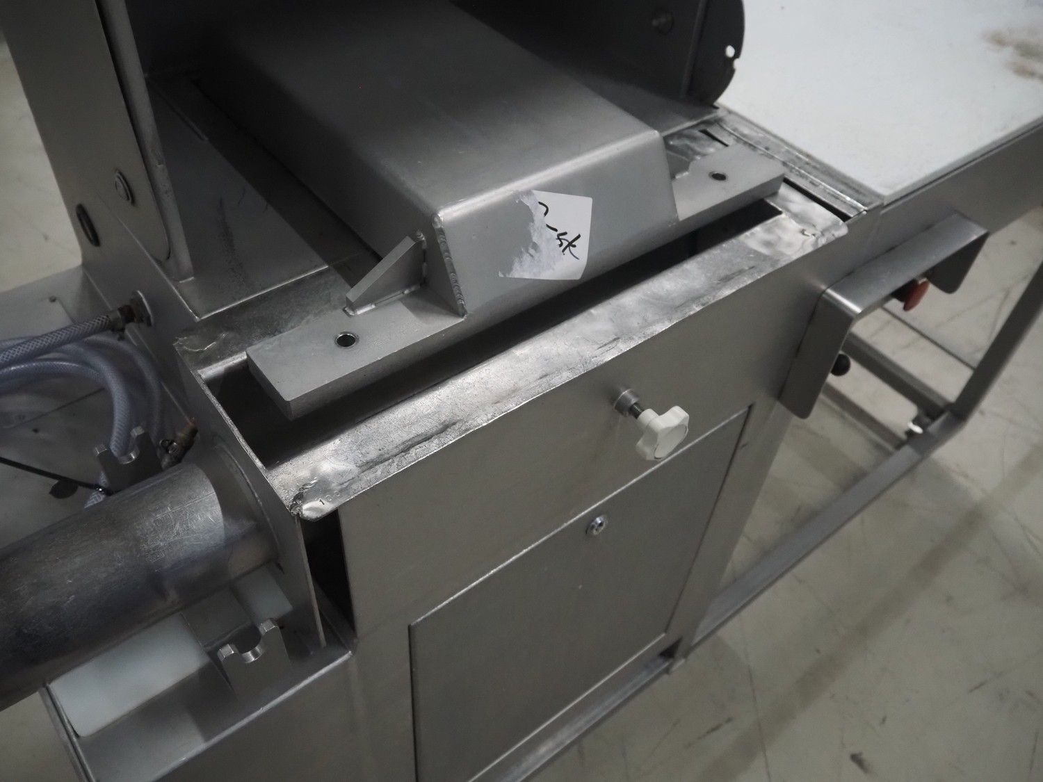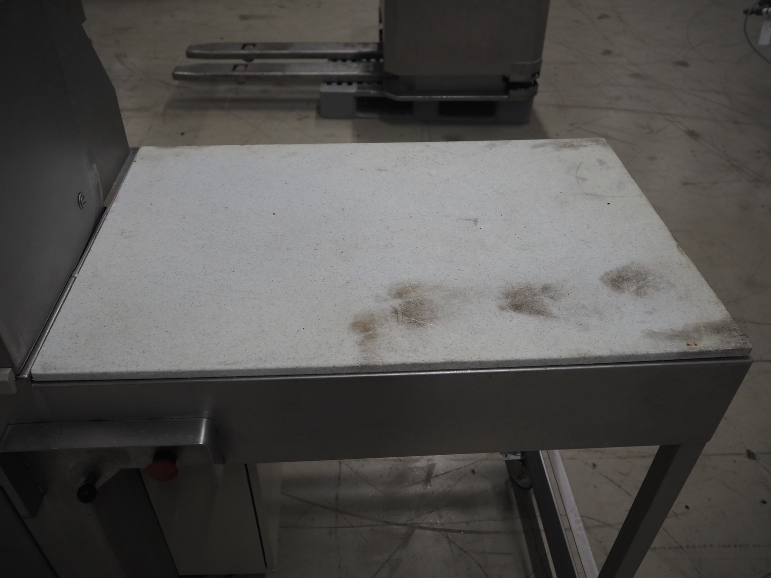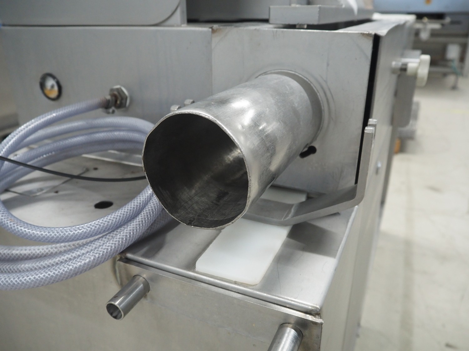 Mobile meat press, diameter press: 100 mm, total dimensions: 1800 mm x 580 mm x 1460 mm.