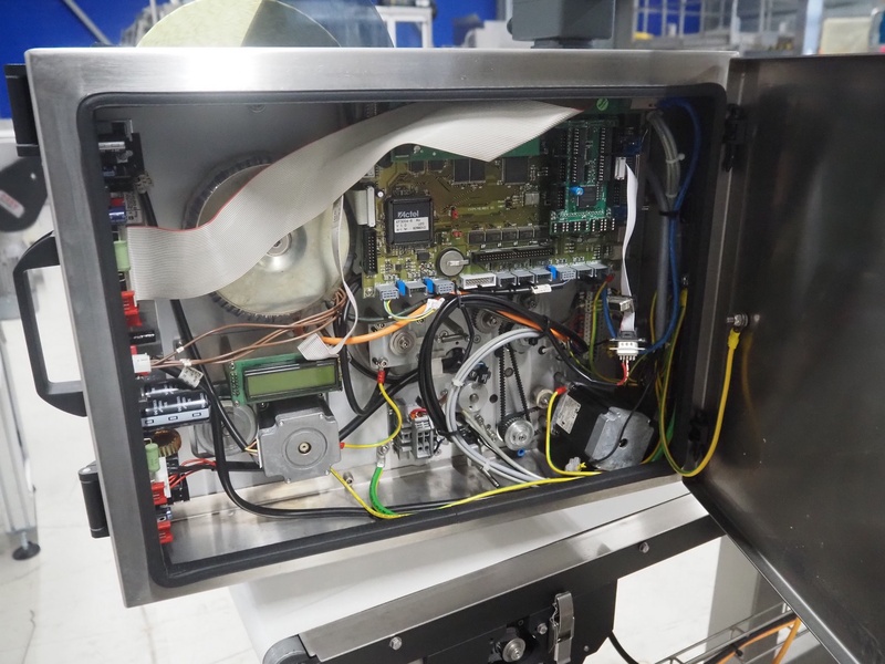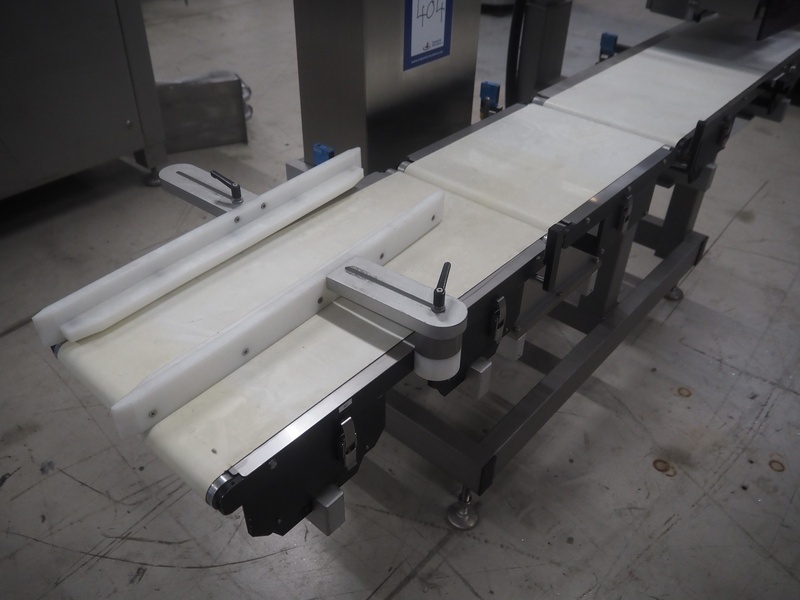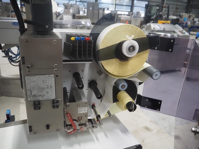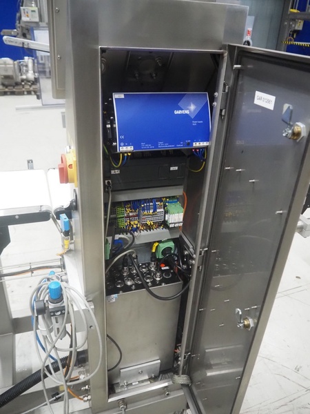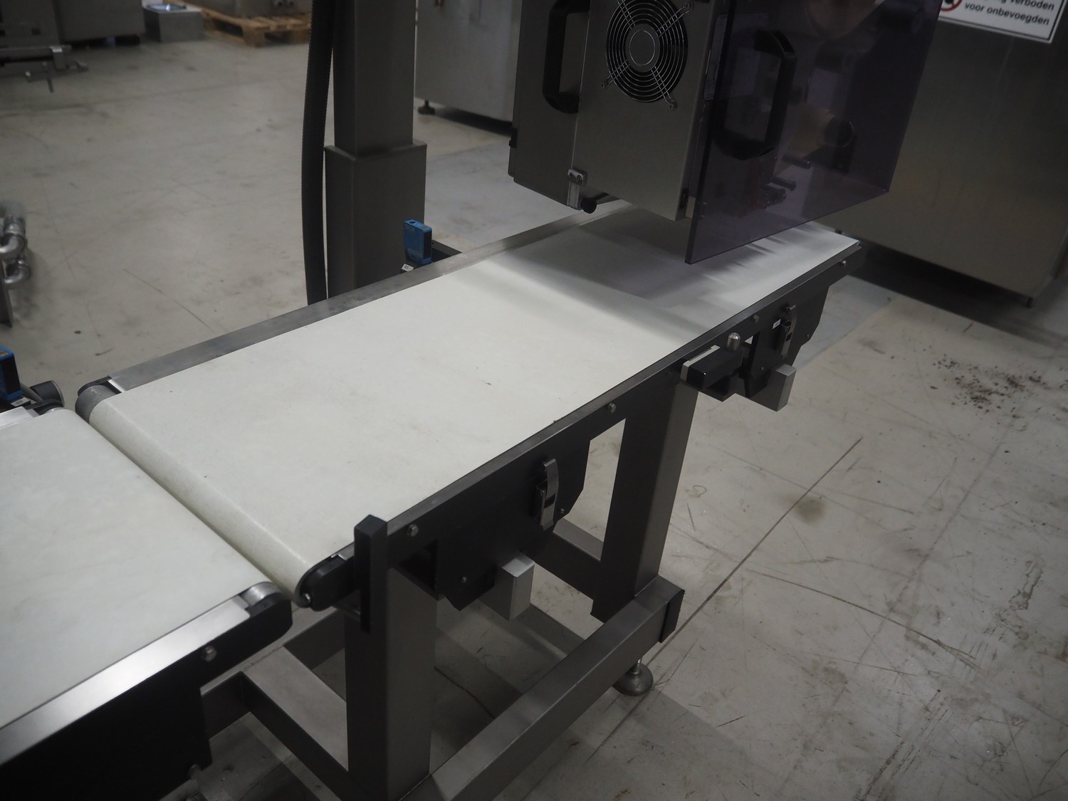 Mettler-Toledo Garvens GmbH checkweigher with labeller, type checkweigher: PAS 3012, serial number: 17000505, year of construction: 2007, 230 V, 50 Hz, maximum: 7.5 kg, minimum: 0.020 kg, e=: 0.001 kg, d=: 0.001 kg, T=-: 7.5 kg, plastic belt, belt width: (3x) 300 mm, total dimensions: 2250 mm x 850 mm x 730 mm.