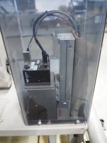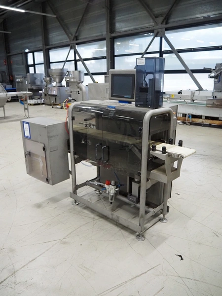 Ishida checkweigher with rejector, model: QC220-VT-1B-F-R-HD-RL, serial number: 560011122, year of construction: 10/2016, 240 V, 1 Ph, 50 Hz, 5 A, weight: 450 kg, plastic belts, belt width: 220 mm, total dimensions: 1950 mm x 1000 mm x 1680 mm.