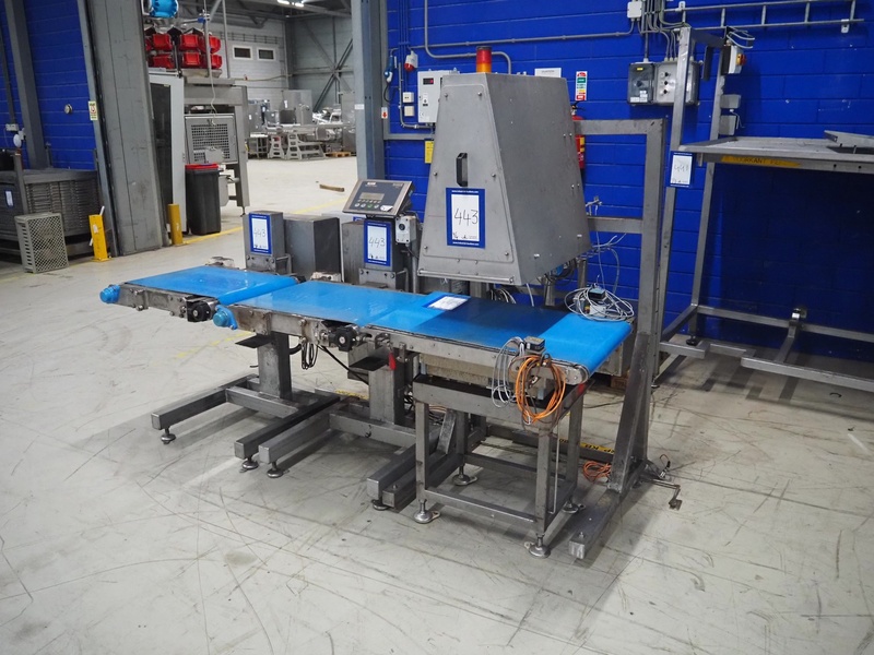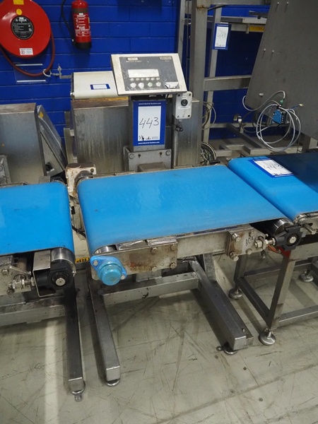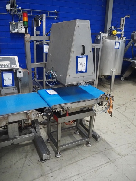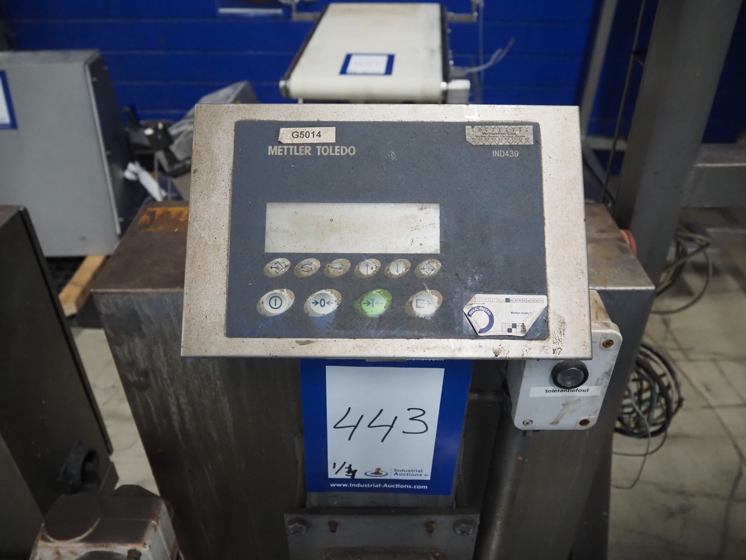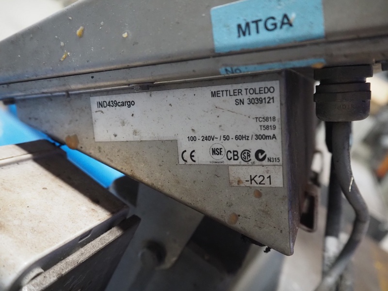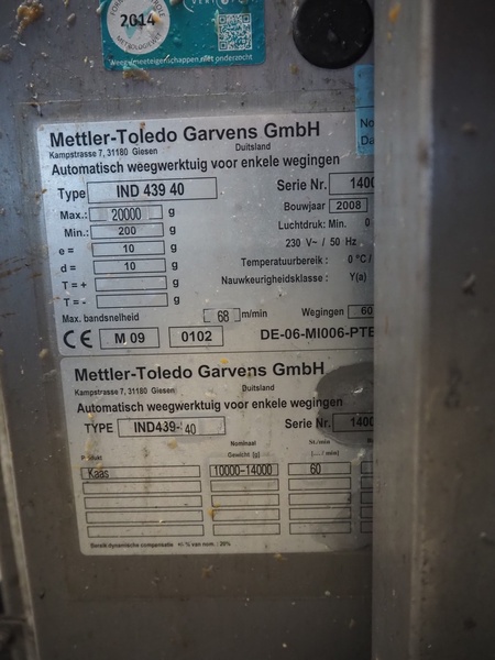 Mettler-Toledo Garvens GmbH checkweigher with scanner, type: IND 439 40, fabrication number: 14003144, year of construction: 2008, 230 V, 50 Hz, maximum: 20000 gram, minimum: 200 gram, e- 10 gram, belt width: 500 mm, total dimensions: 2300 mm x 1100 mm x 1900 mm.