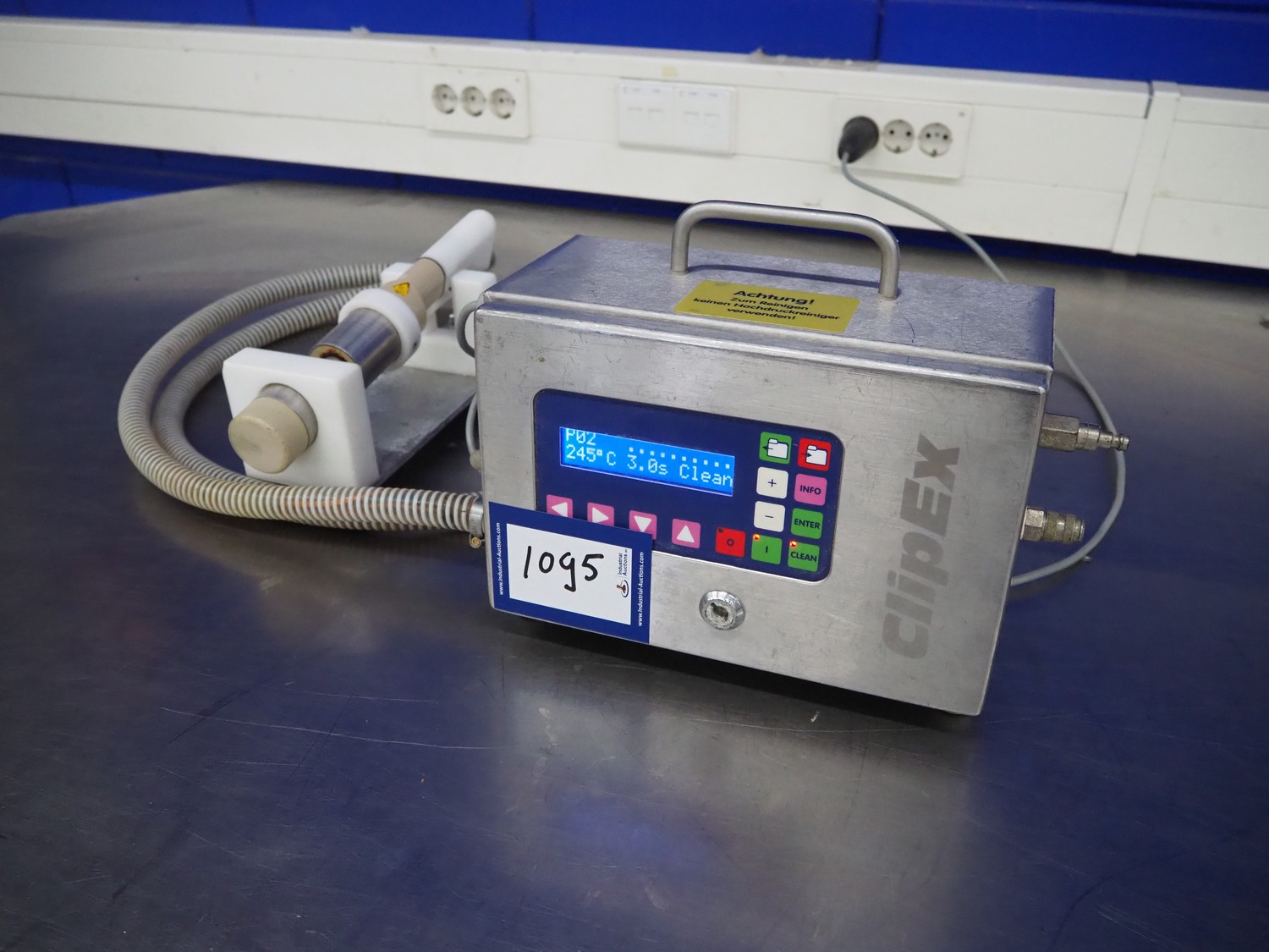 Frey casing sealer, type: CLIPEX, machine number: CXC1202900, year of construction: 2010, 230 V, 50/60 Hz, 0.5 kW, dimensions: (1x) 350 mm x 150 mm x 220 mm, (1x) 400 mm x 100 mm x 120 mm.