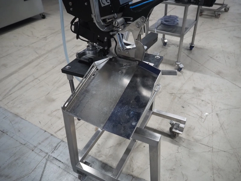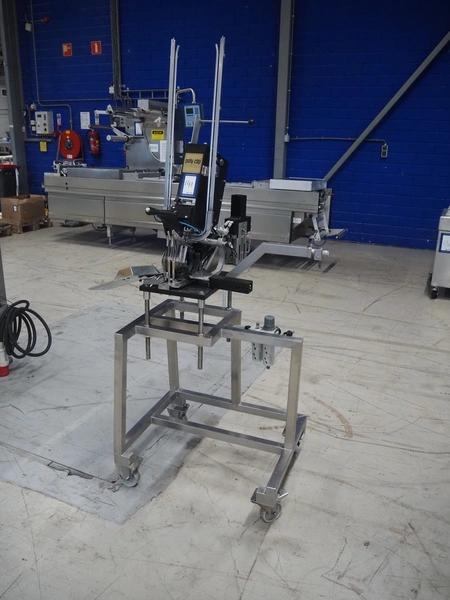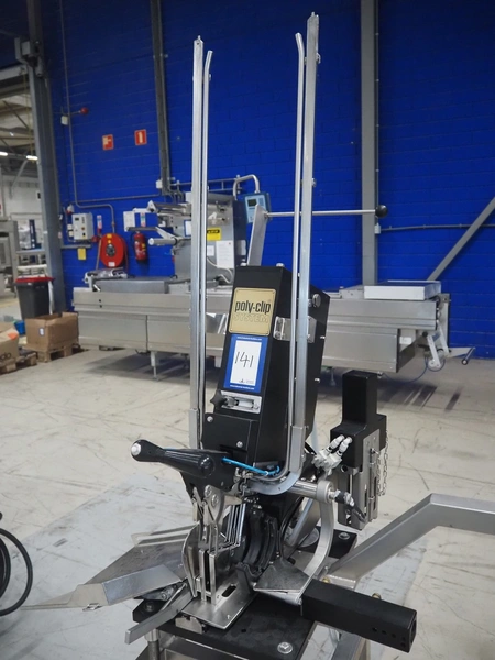 Poly-clip system GmbH & Co. KG mobile double clipper, dimensions: 900 mm x 700 mm x 2000 mm.