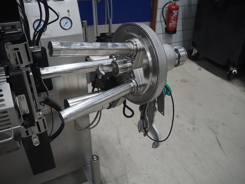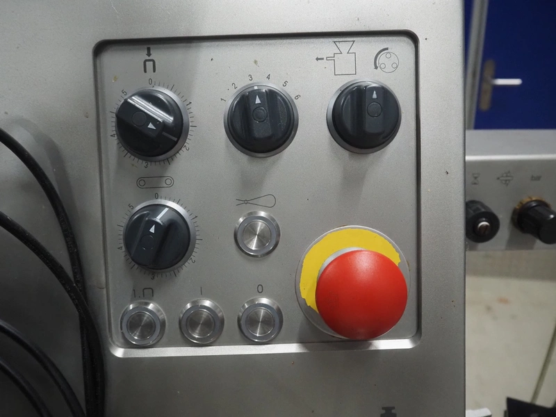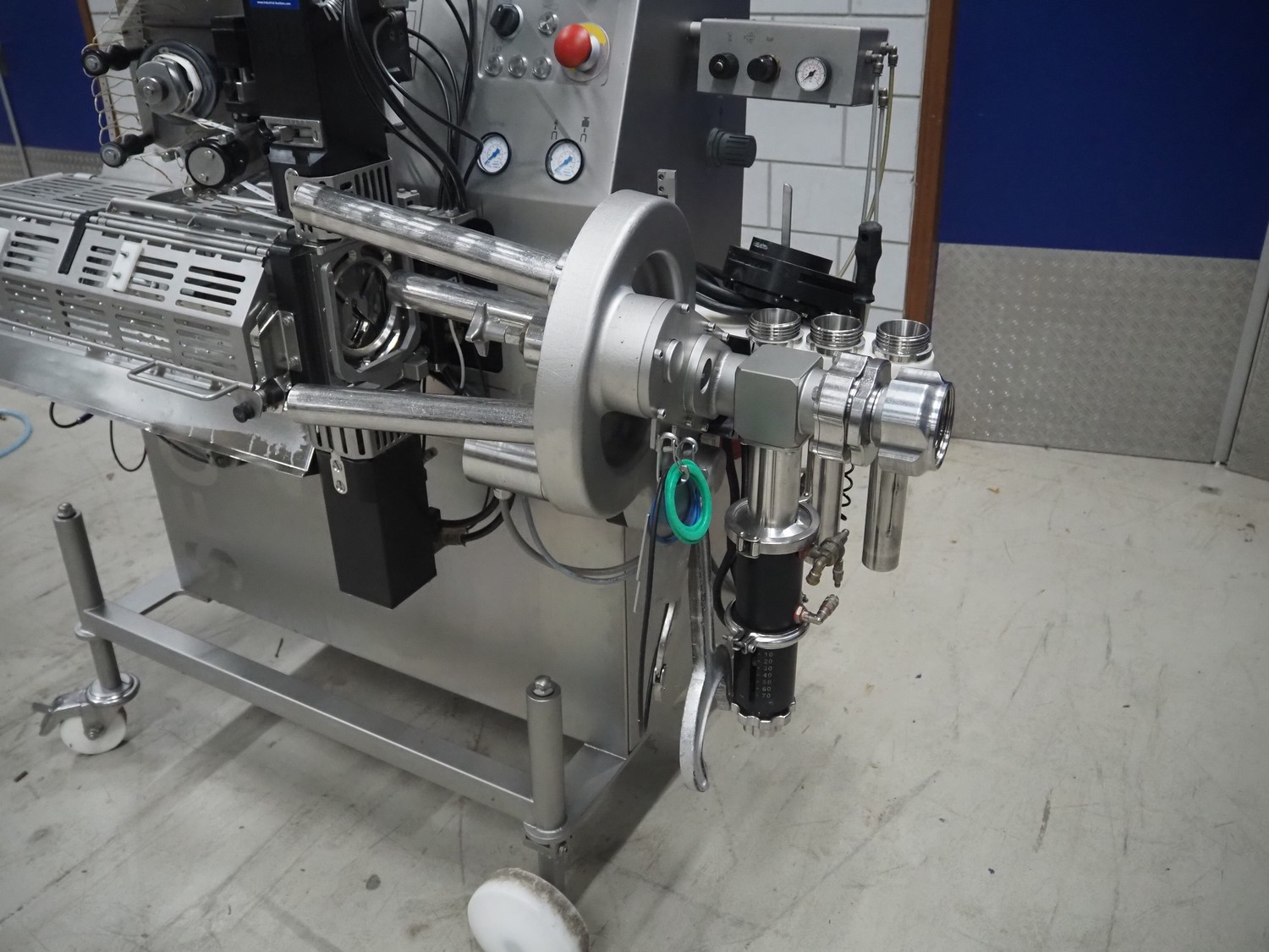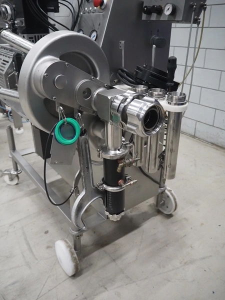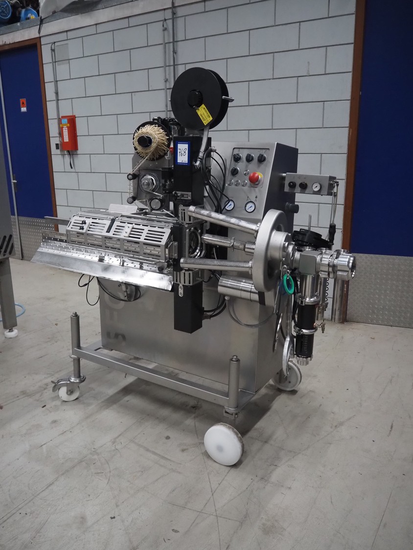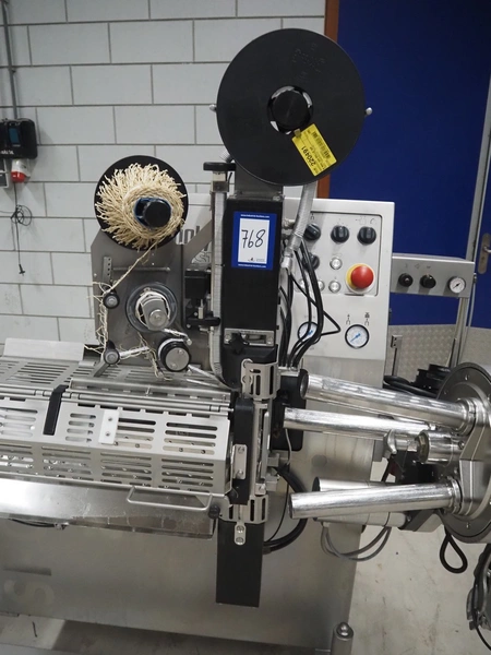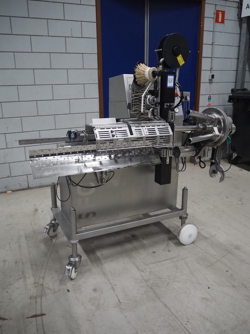 Poly-clip system GmbH & Co. KG mobile automatic clipper, type: SFC, number: 125, year of construction: 2016, 400 V, 3 Ph, 50/60 Hz, 4.3 A, 2.4 kW, 5/7 bar, weight: 310 kg, dimensions: 1850 mm x 900 mm x 1800 mm.