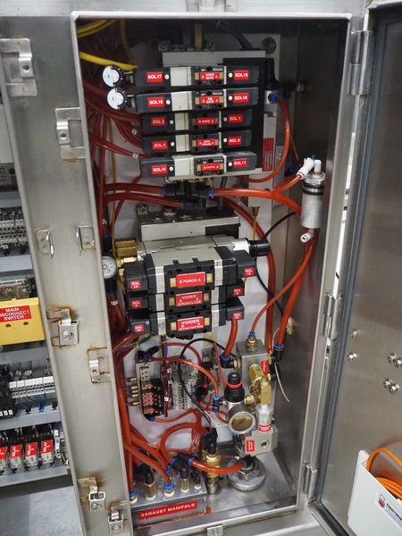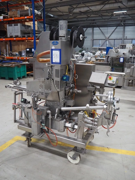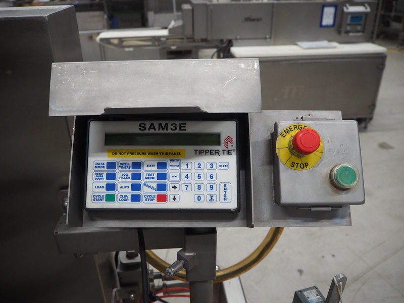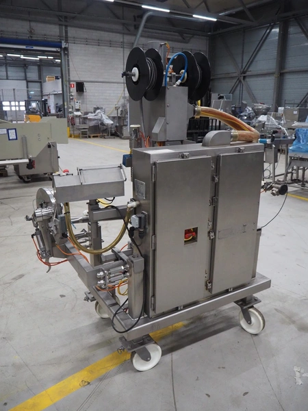 Tipper Tie mobile automatic double clipper, model: SAM3E, serial number: T0007097, year of construction: 04/10/1995, dimensions: 2050 mm x 1050 mm x 2050 mm. Including crate with parts.