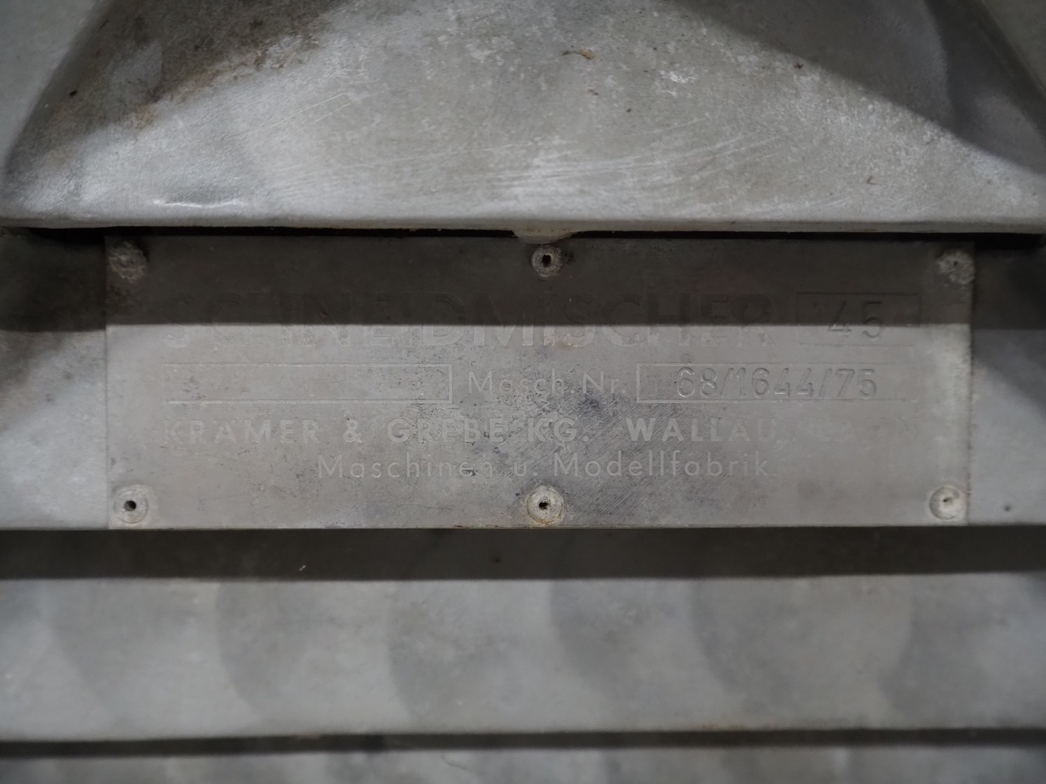 Krämer+Grebe cutter, steel bowl, machine number: 68/1644/75, bowl dimensions: Ø 750 mm x 120 mm, total dimensions: 1170 mm x 1000 mm x 1150 mm.