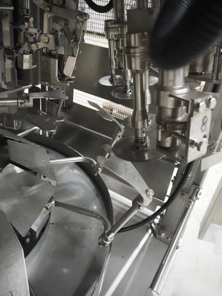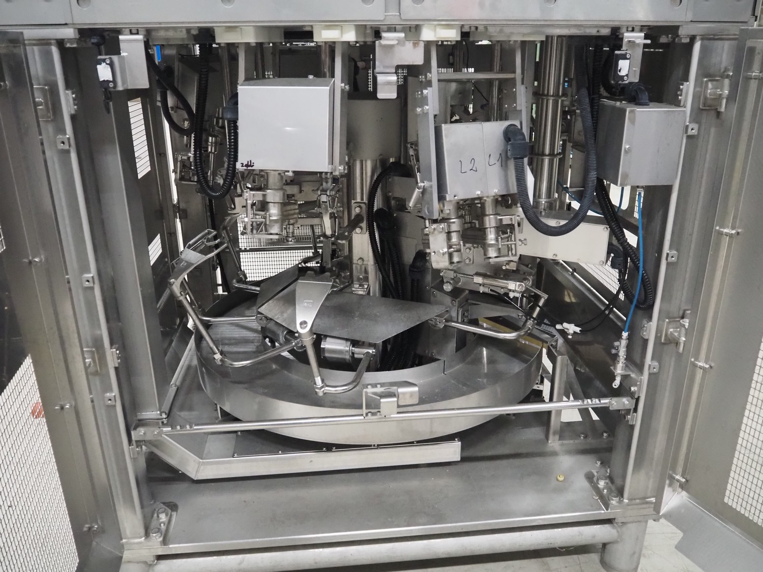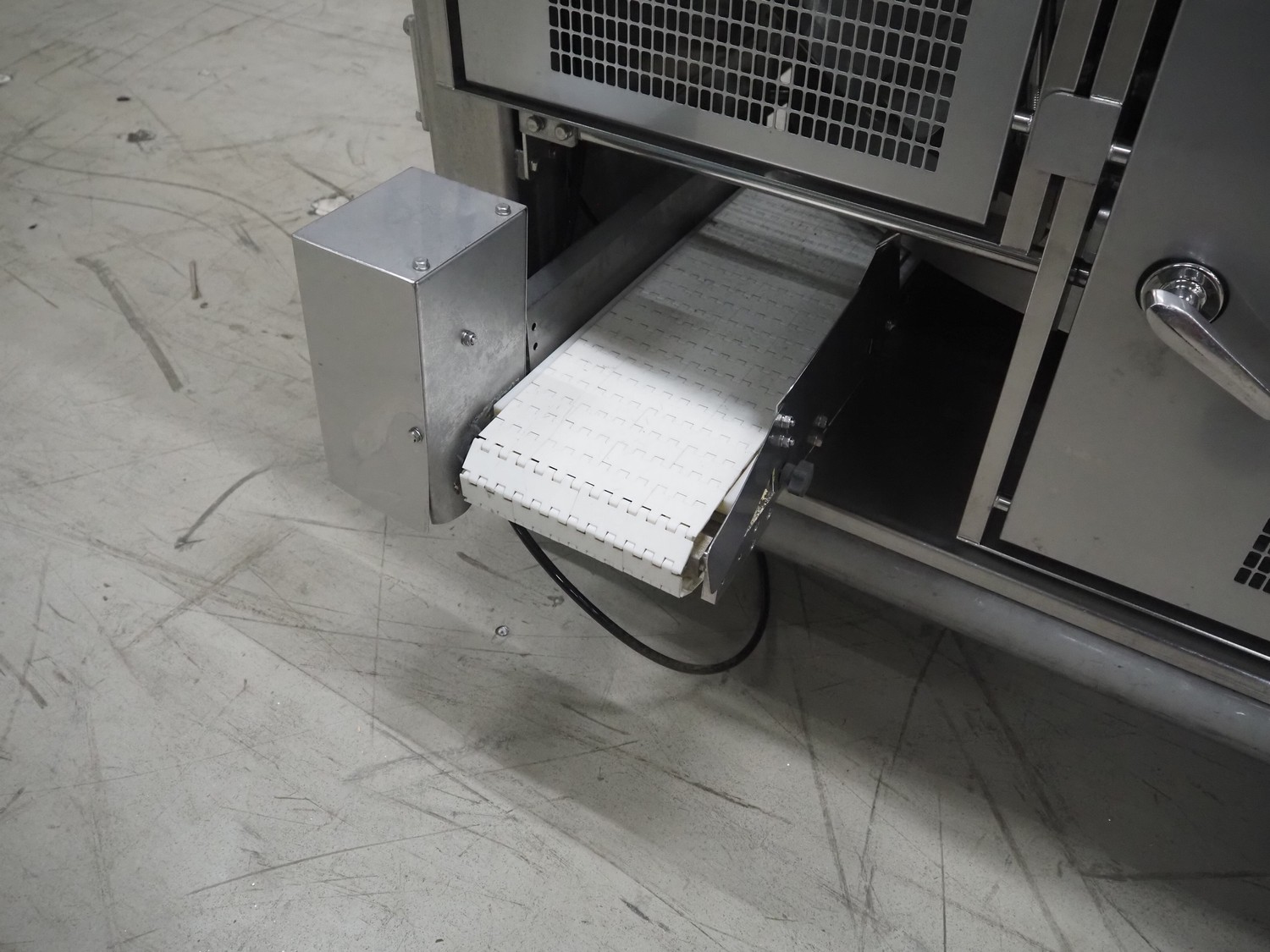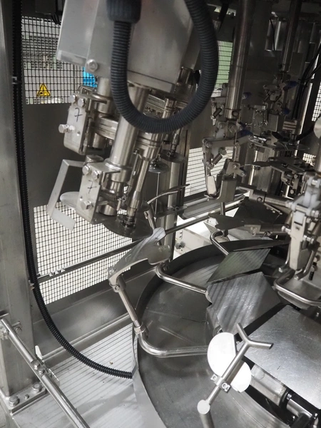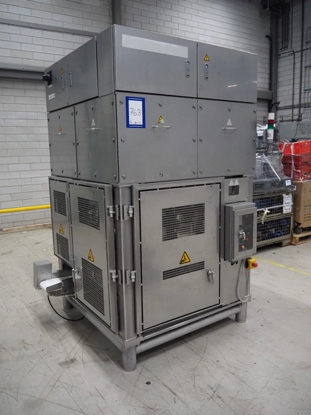 Mayekawa TORIDAS MARK II automatic chicken whole leg deboning machine, model: MT-04L, serial number: 2397, year of construction: 12.6, capacity: 1000 pieces per hour, plastic outfeed belt, belt width: 200 mm, total dimensions: 1600 mm x 1600 mm x 2350 mm. With 2 pallets with parts.