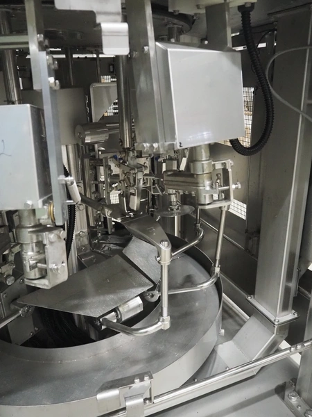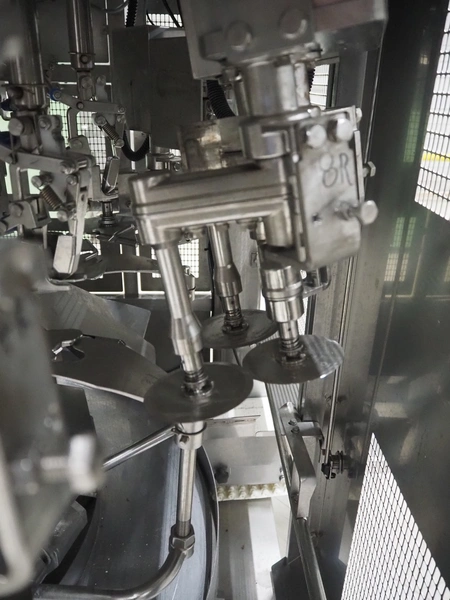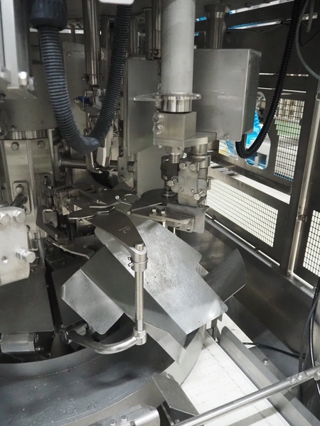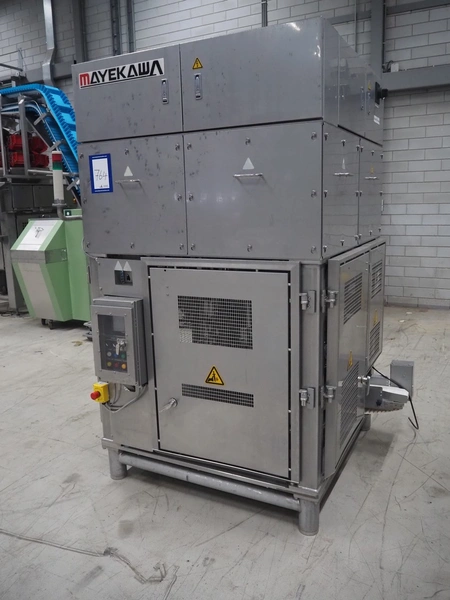 Mayekawa TORIDAS MARK II automatic chicken whole leg deboning machine, model: MT-04R, serial number: 2384, year of construction: 12.6, capacity: 1000 pieces per hour, plastic outfeed belt, belt width: 200 mm, total dimensions: 1600 mm x 1600 mm x 2350 mm.