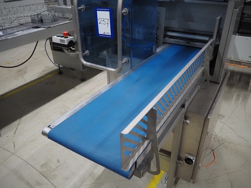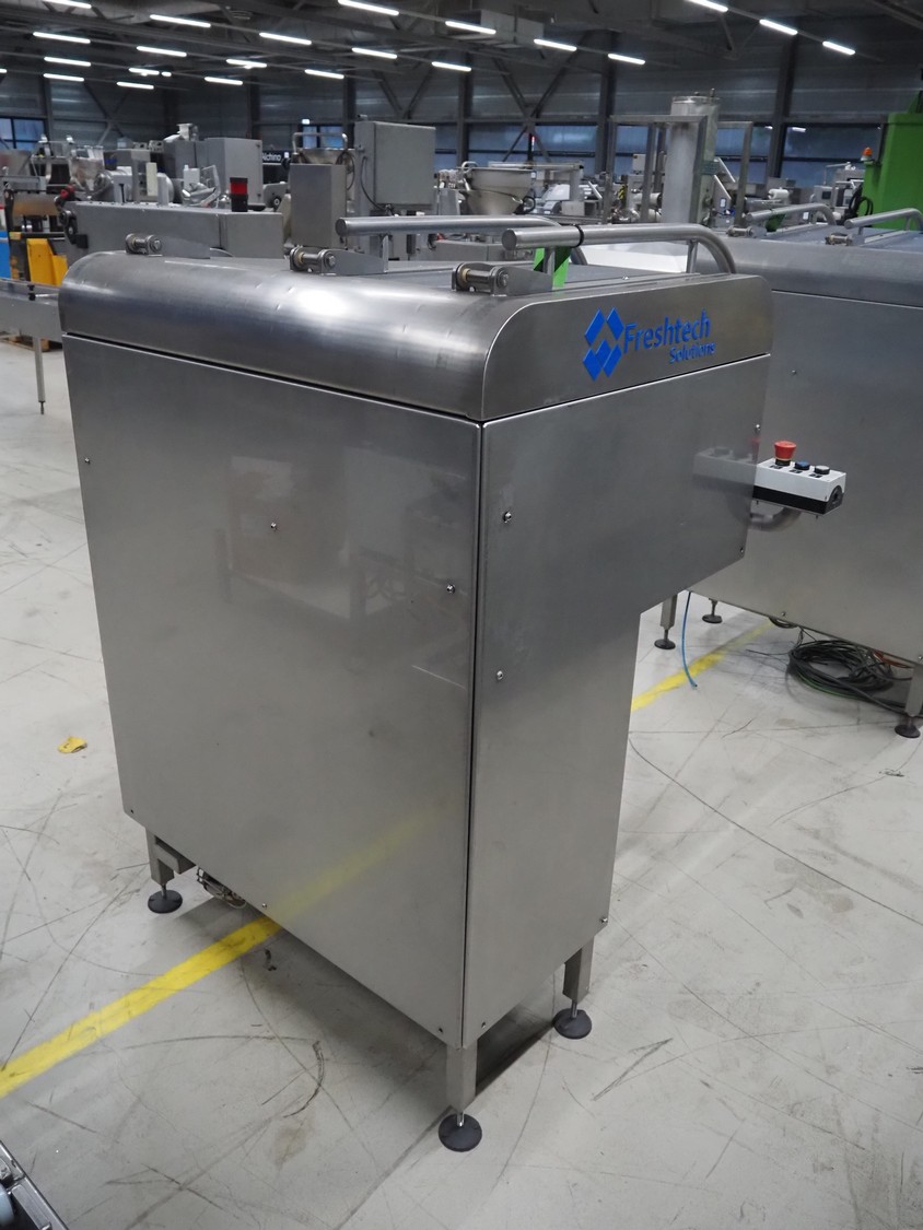 Freshtech Solutions tray denester, clearance: 400 mm x 300 mm, plastic belt, belt width: 380 mm, total dimensions: 1600 mm x 1030 mm x 1560 mm.