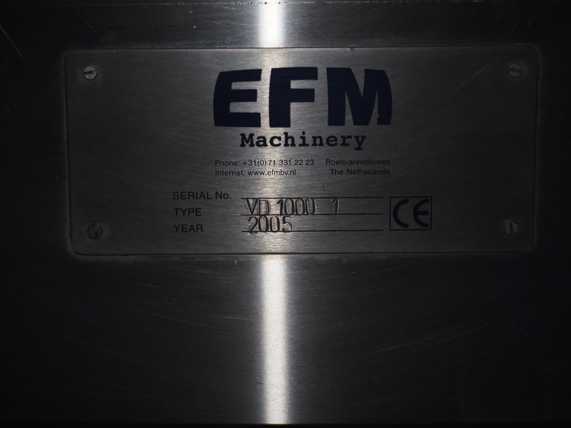 EFM mobile depositor, type: VD 1000 1, year of construction: 2005, 1 head, diameter head: 20 mm, total dimensions: 1750 mm x 450 mm x 1830 mm.