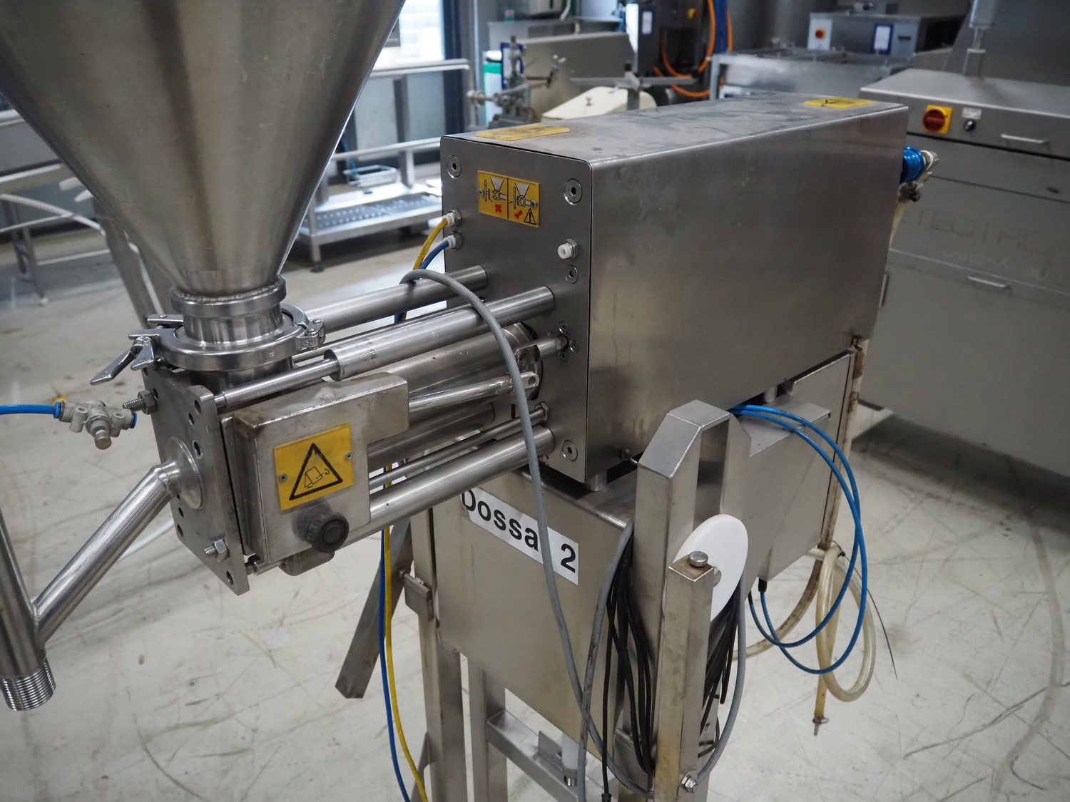 GEI Turbo mobile depositor, type: D100P, machine number: D100P4909500, year of construction: 1999, s/s hopper, hopper dimensions: Ø 280 mm x 470 mm, total dimensions: 1200 mm x 620 mm x 1820 mm.