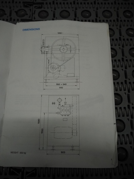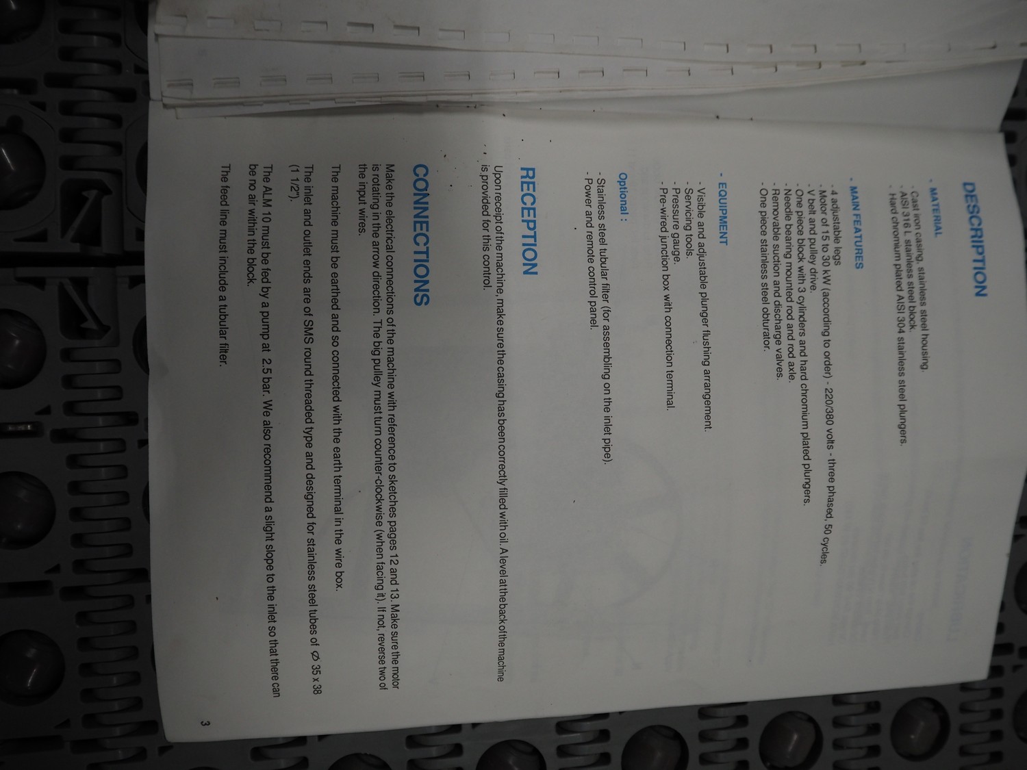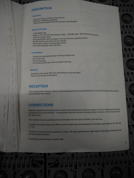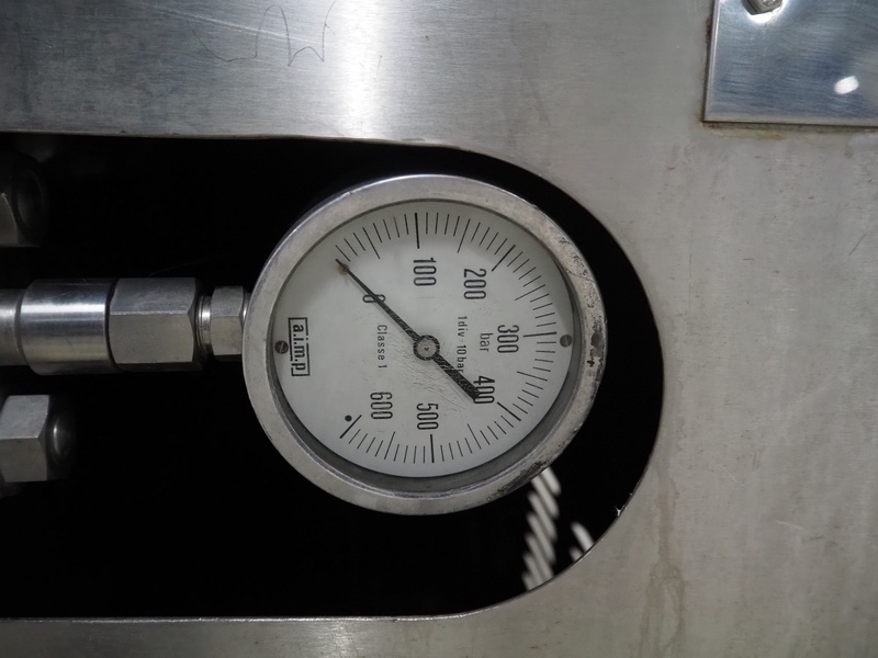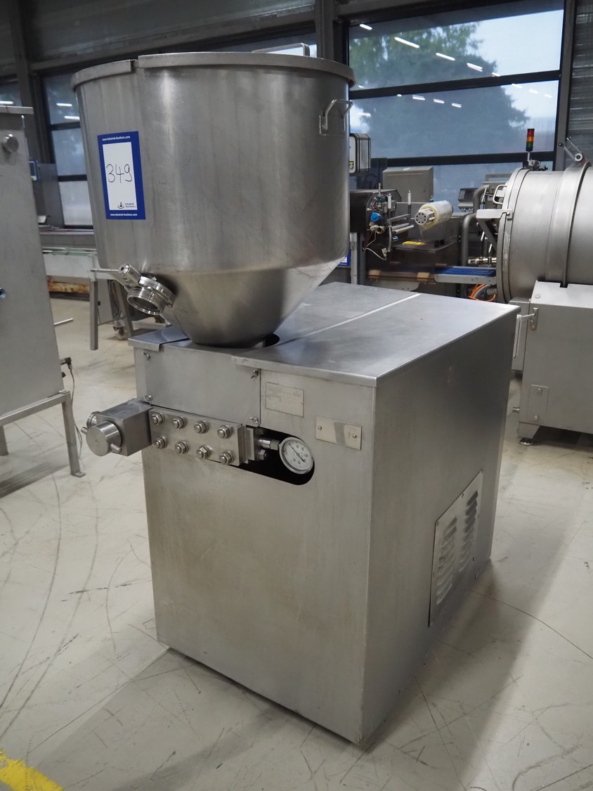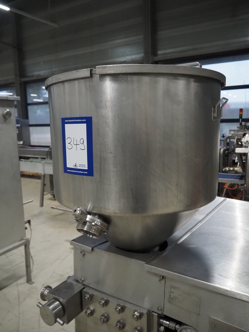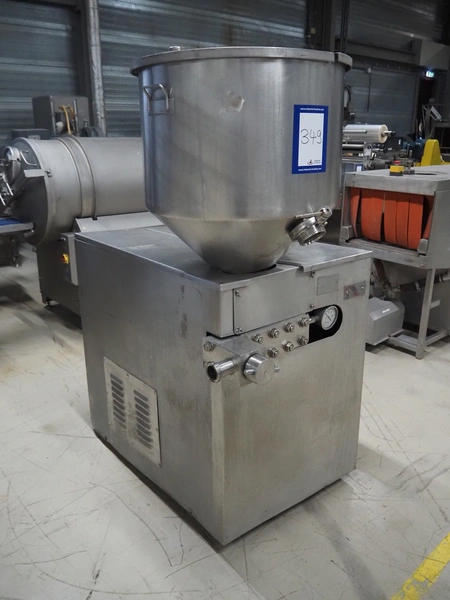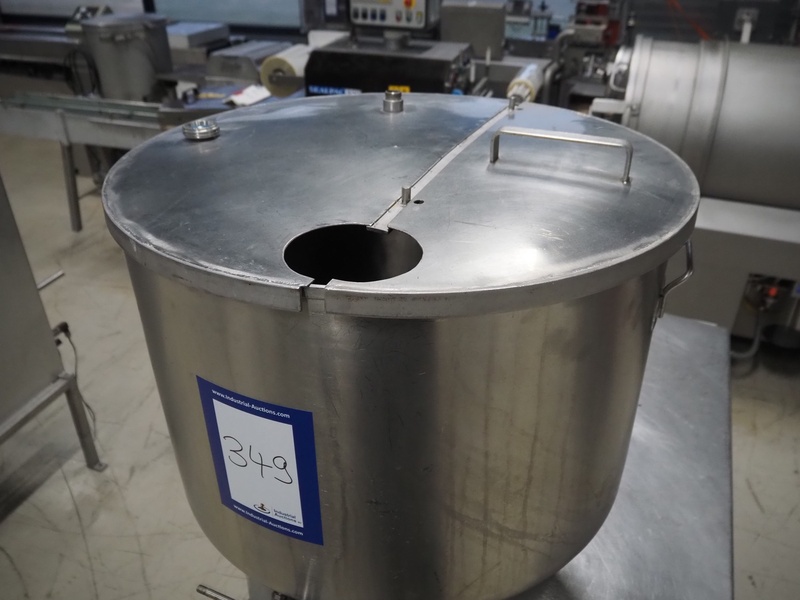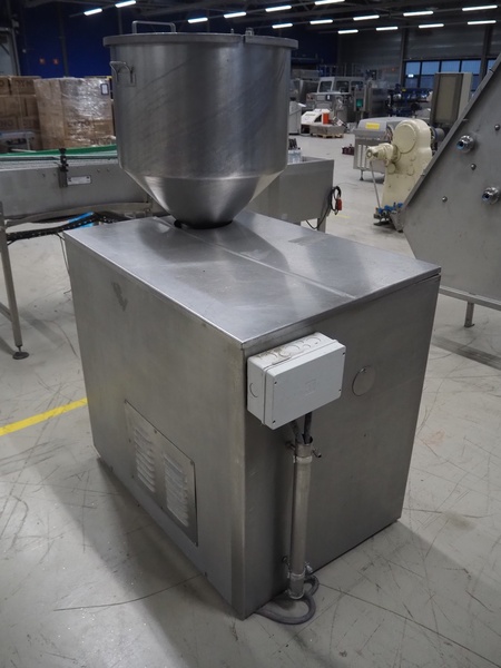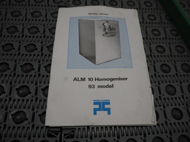 Pierre Guerin homogenizer, type: ALM 10 LISSEUSE, number: B8180680, s/s tub, inside dimensions: Ø 700 mm x 700 mm, total dimensions: 1500 mm x 950 mm x 1900 mm.