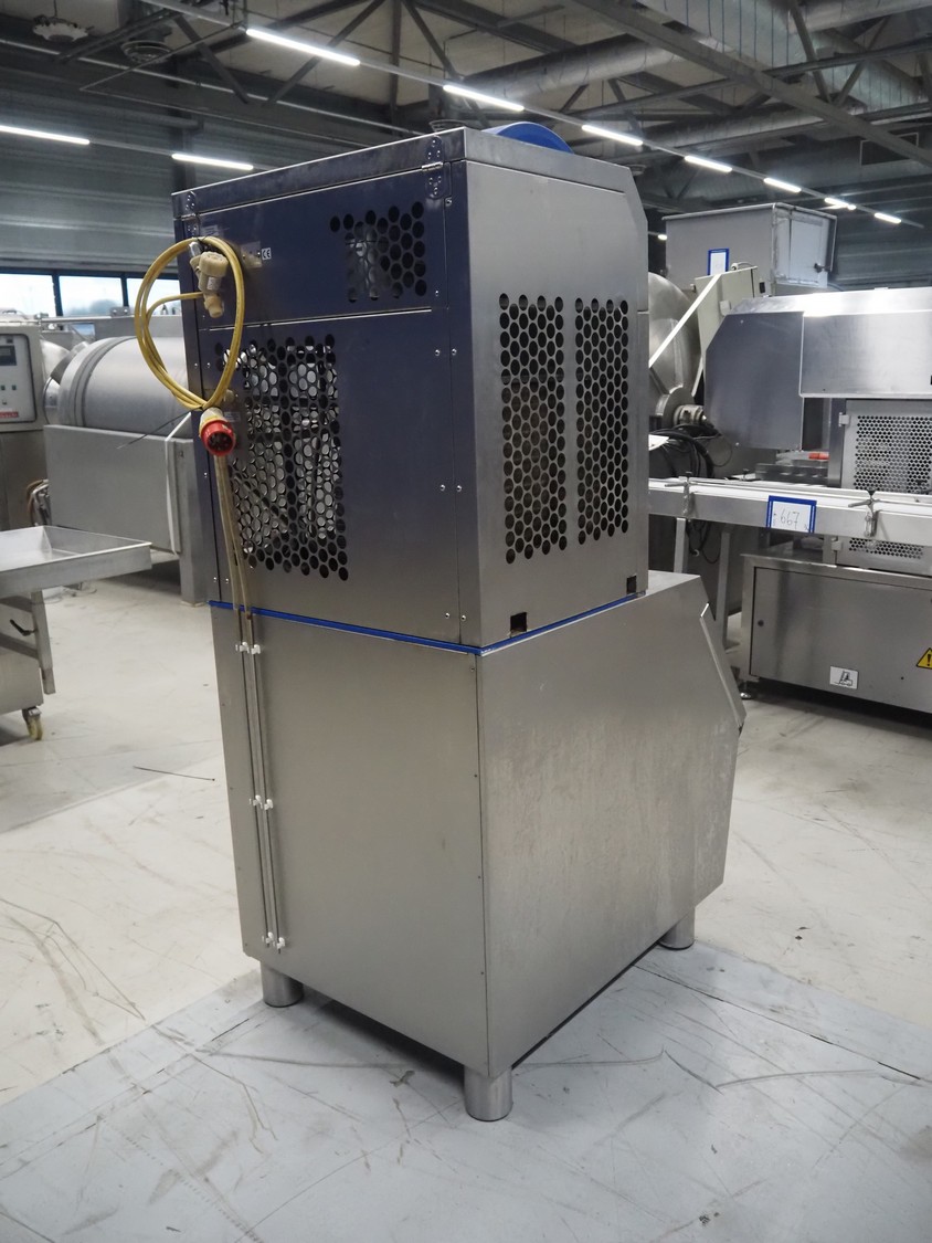 Weber ice machine with bunker, type: WIC 400, number: 306, year of construction: 2008, 400 V, 50 Hz, 1.6 A, refrigerant: R404a, capacity: 400 kg per 24 hours, L'Unite Hermetique cooling compressor, dimensions: 1200 mm x 800 mm x 2000 mm.
