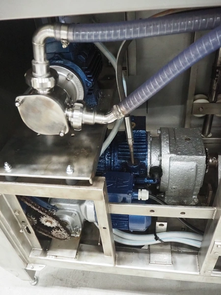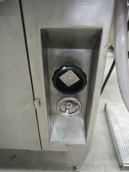 Fomaco Food Machinery Company A/S injector, machine number: 1189 1979, 44 needles, s/s mesh belt, belt width: 580 mm, total dimensions: 2300 mm x 900 mm x 2300 mm.