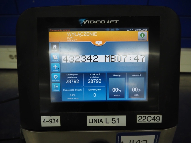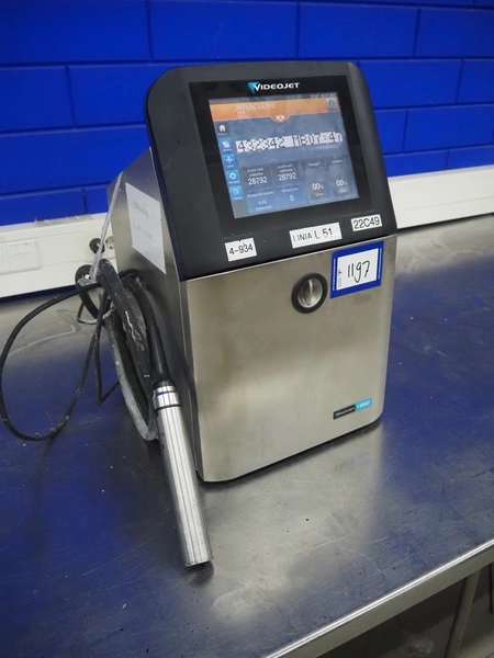 Videojet inkjet printer, model: 1860, serial number: 19163022C49ZH, 100-120/200-240 V, 1 Ph, 50/60 Hz, 2 A, 70 W, toner: V7206L, make-up: V901Q- 1l, ink: V4211-L, dimensions: 370 mm x 400 mm x 610 mm.