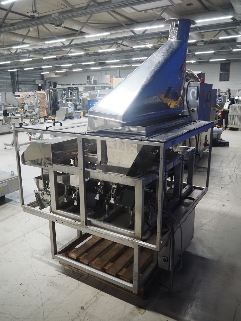 Easyweigh linear weigher, 3 lanes, type: Maxi, serial number: 080105/080106/080107, year of construction: 2008, 3 s/s vibrating gutters, total dimensions: 1500 mm x 1500 mm x 2100 mm.