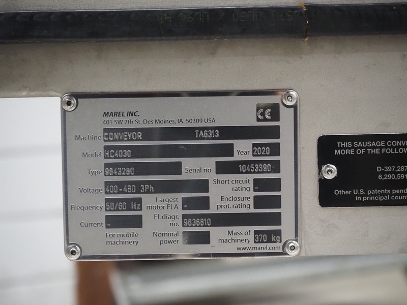 Marel mobile hanging line, model: H04030, serial number: 10453380, year of construction: 2020, 400-480 V, 3 Ph, 50/60 Hz, 370 kg, dimensions: 3700 mm x 650 mm x 1450 mm.