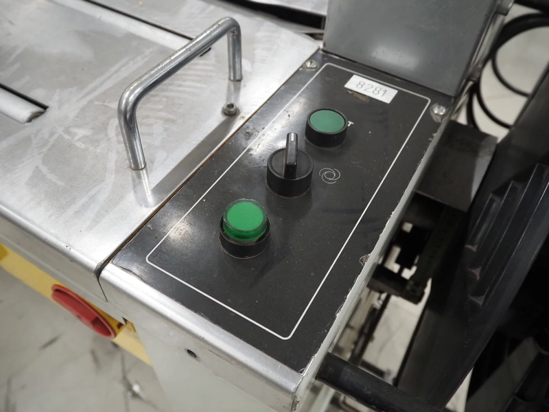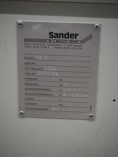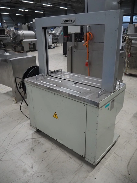 Sander mobile strapping machine, model: TZ/3, number: 0075722, year of construction: 2002, 230 V, 1 Ph, 50 Hz, 1.0 kW, clearance: 850 mm x 600 mm, total dimensions: 1420 mm x 630 mm x 1570 mm.