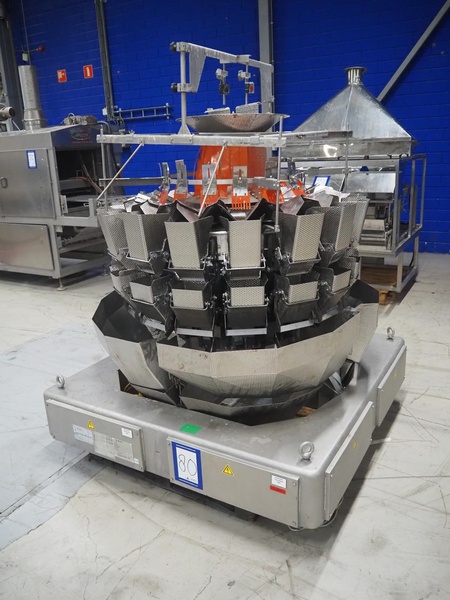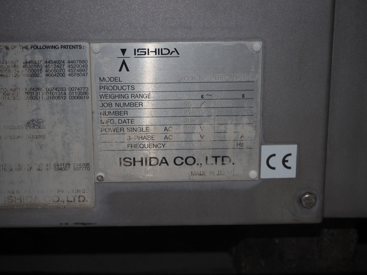 Ishida 16-heads multihead weigher, model: CCW-NZ-216B-4M/20WP, number: 27588, year of construction: June 1998, 220 V, 50 Hz, 12.5 A, dimensions: 1500 mm x 1500 mm x 2000 mm.