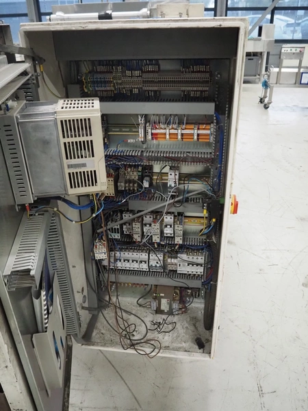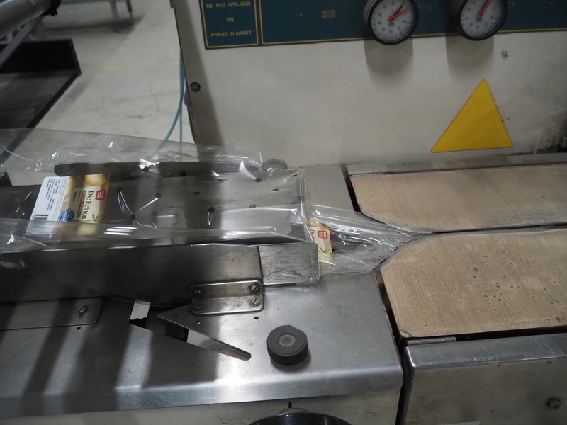 Ilapak flowpacker, model: Carrera 1000 M, serial number: 99 171, 400 V, 3 Ph, 50 Hz, 8 A, plastic belts, belt width: (2x) 60 mm, (1x) 250 mm, distance between dividers: 300 mm, seal length: 280 mm, total dimensions: 4050 mm x 1300 mm x 1550 mm.