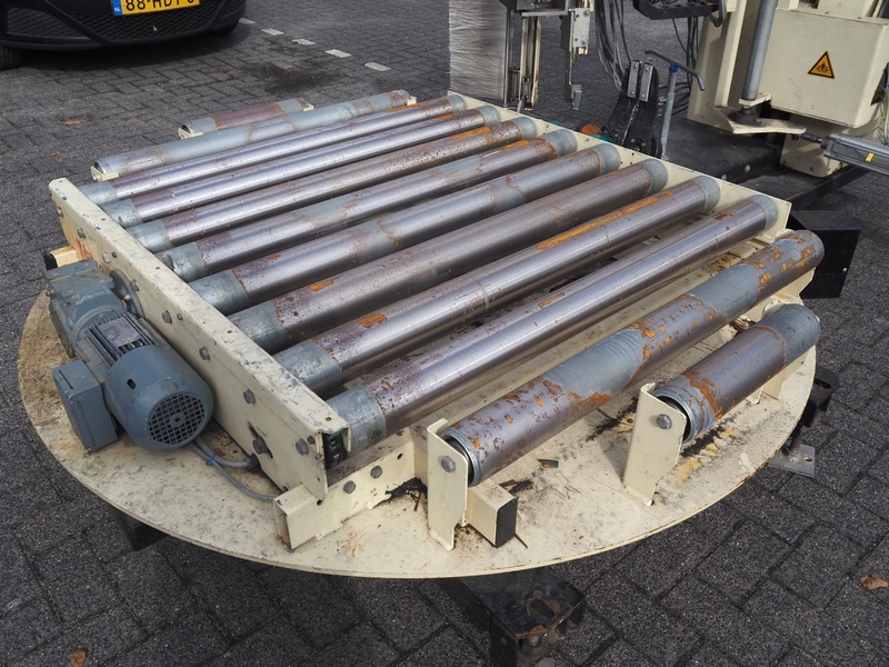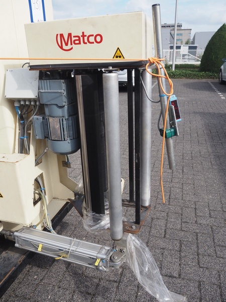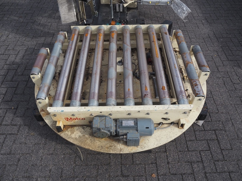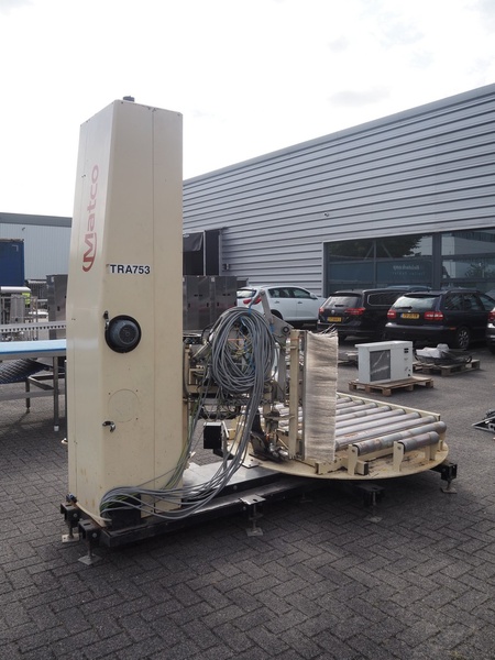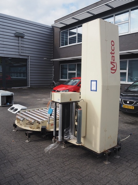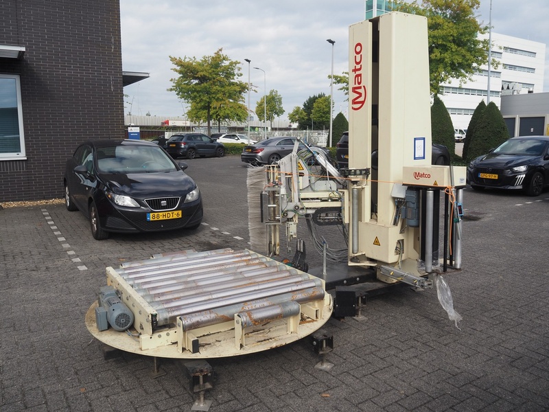 Matco pallet wrapper, type: TVA753, film width: 615 mm, diameter platform: Ø 1800 mm, roller width: 1200 mm, total dimensions: 3300 mm x 2200 mm x 2550 mm.