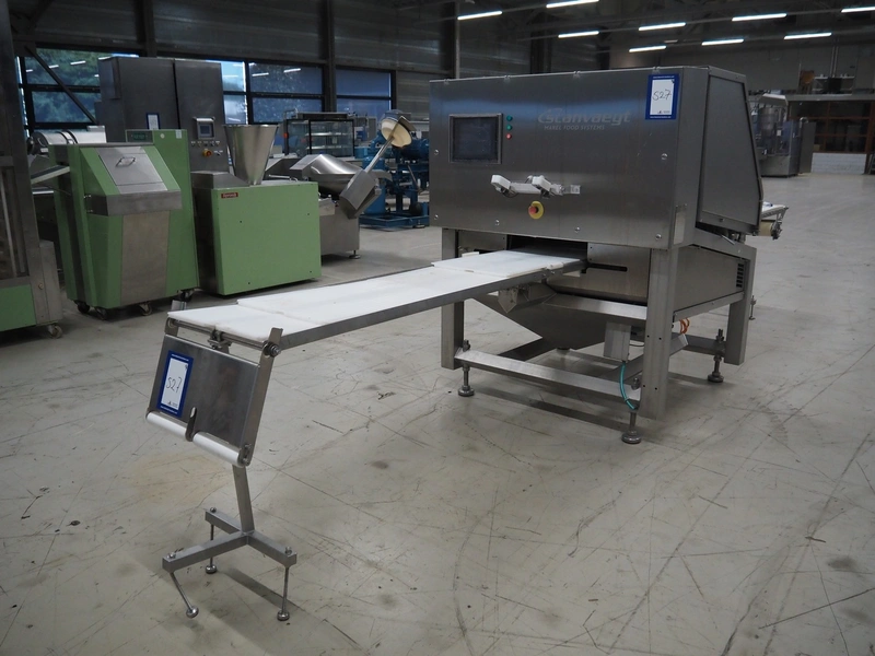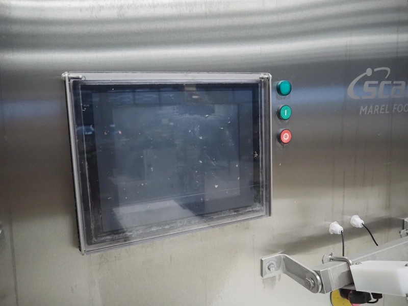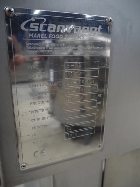 Scanvaegt / Marel double lane portion cutter, type: B-22, serial number: 80.0790, year of construction: 2008, 400 V, 3 Ph, 50/60 Hz, 16/32 A, 8 kW, dimensions: 8300 mm x 1500 mm x 2000 mm.