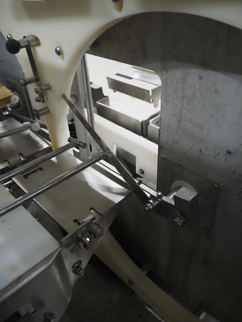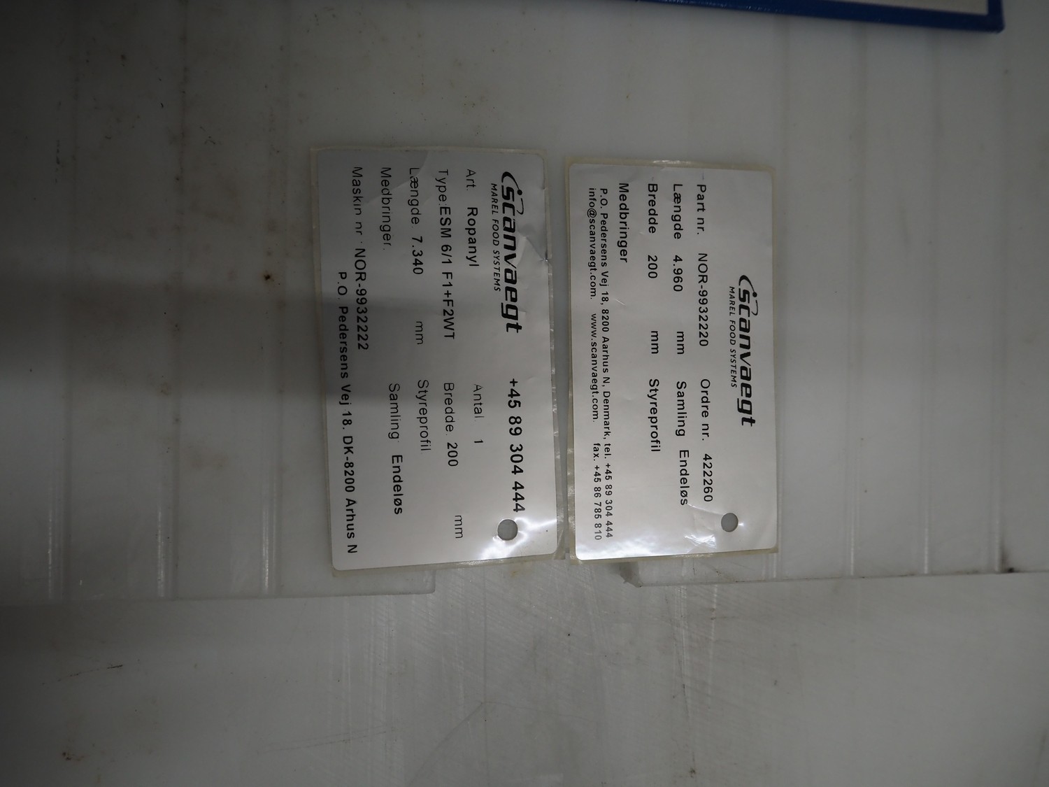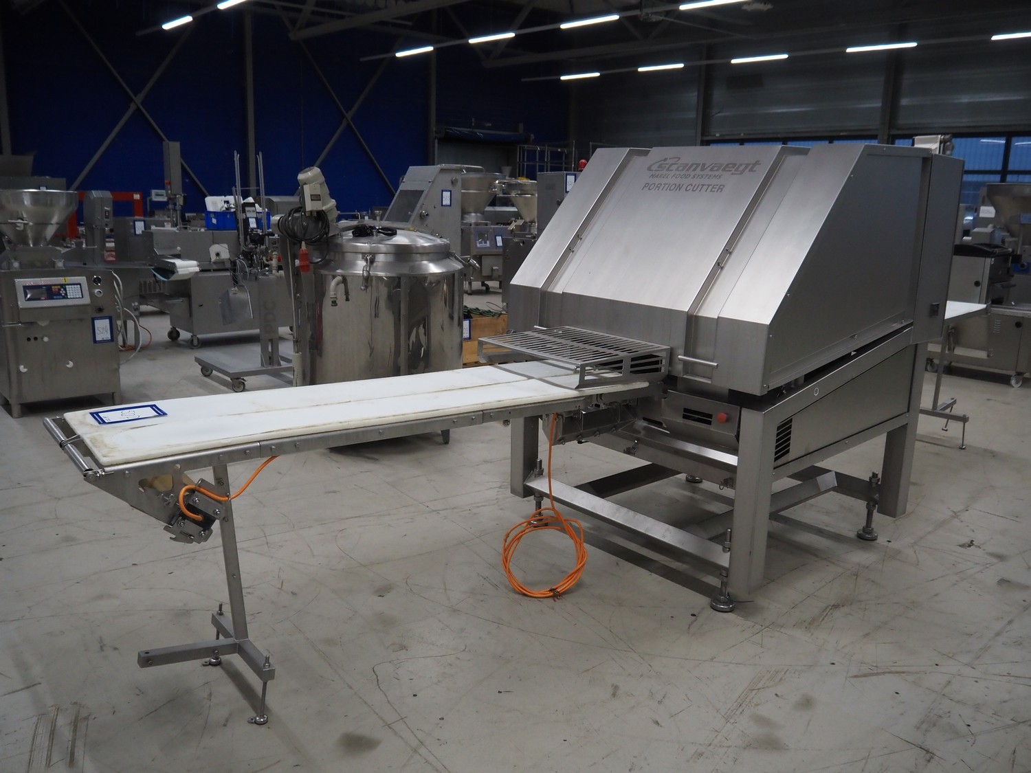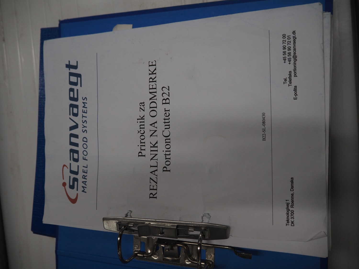 Scanvaegt / Marel double lane portion cutter, type: B-22, serial number: 80.0790, year of construction: 2008, 400 V, 3 Ph, 50/60 Hz, 16/32 A, 8 kW, dimensions: 8300 mm x 1500 mm x 2000 mm.