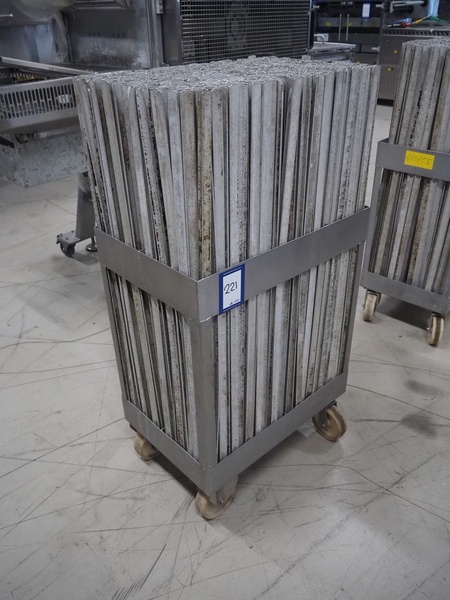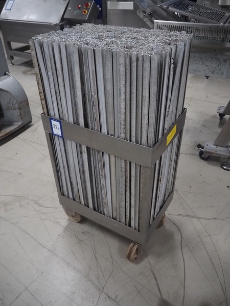S/s trolley with approximately 600 Y-shaped aluminium smoke sticks, length sticks: 1020 mm, total dimensions: 600 mm x 400 mm x 1160 mm.