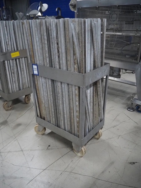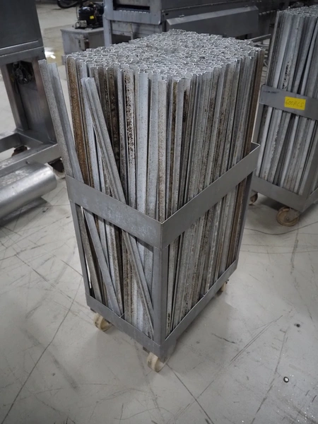 S/s trolley with approximately 600 Y-shaped aluminium smoke sticks, length sticks: 1020 mm, total dimensions: 600 mm x 400 mm x 1160 mm.