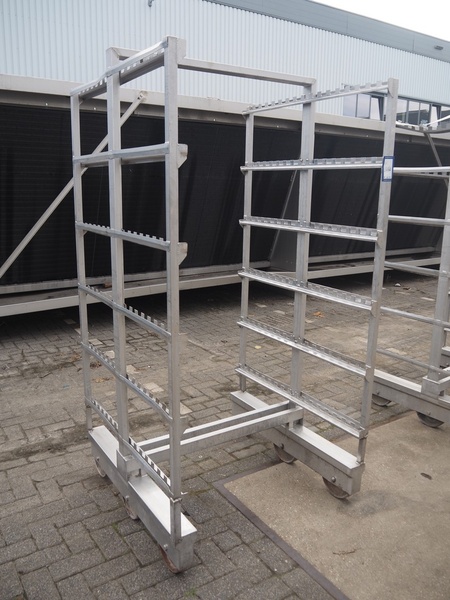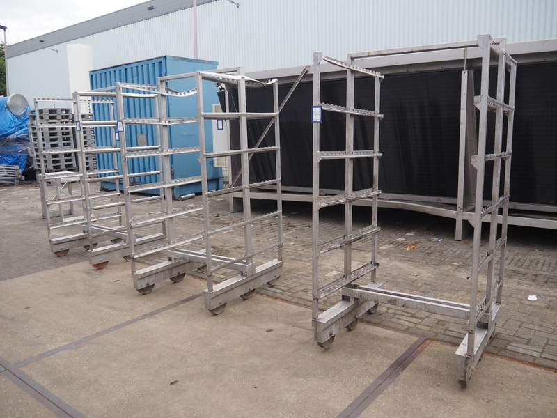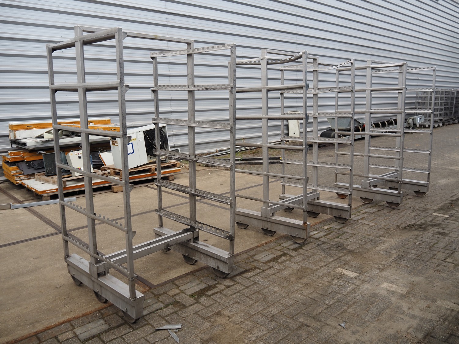 3 s/s smoke trolleys, 6 floors, floor dimensions: (6x) 1000 mm x 930 mm, dimensions trolley: (3x) 1000 mm x 1000 mm x 1970 mm.