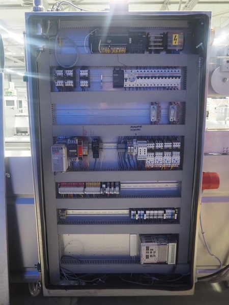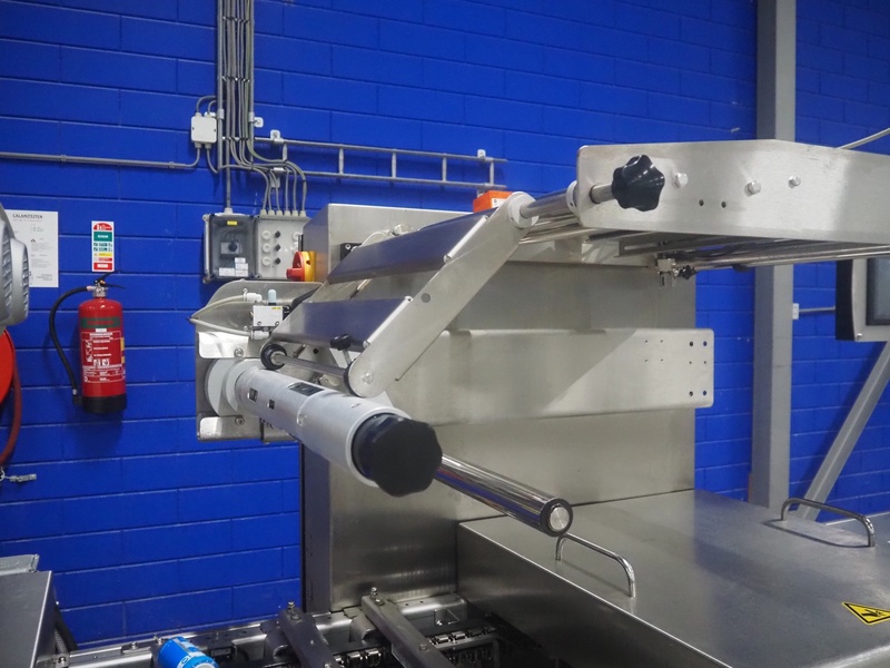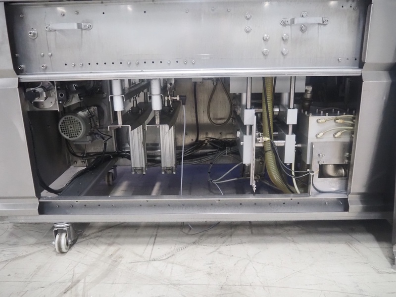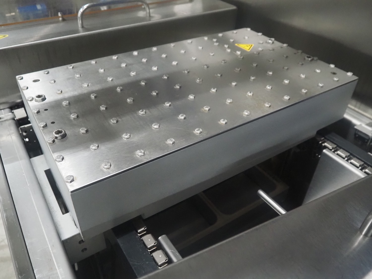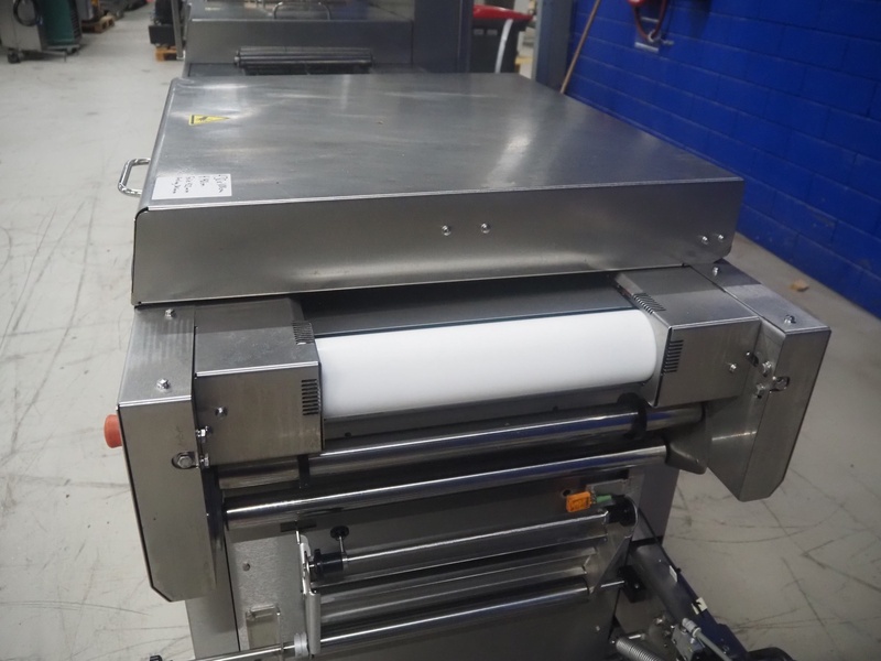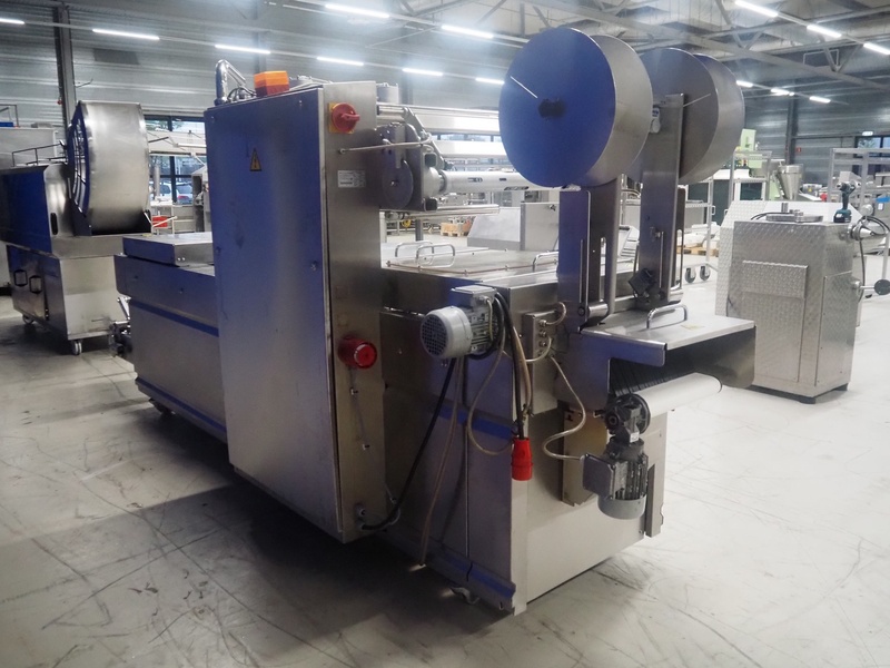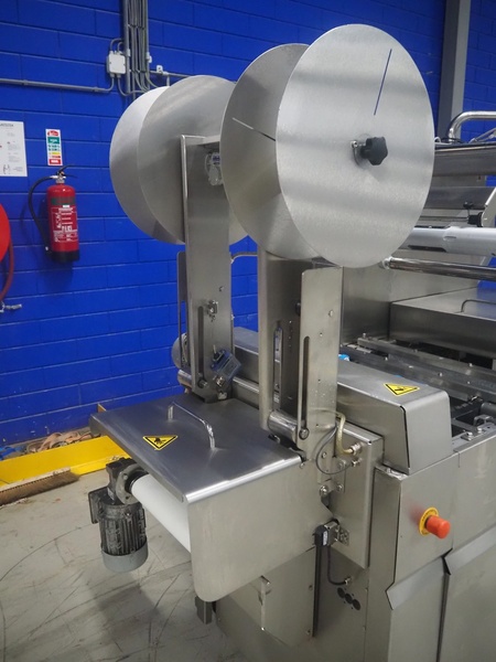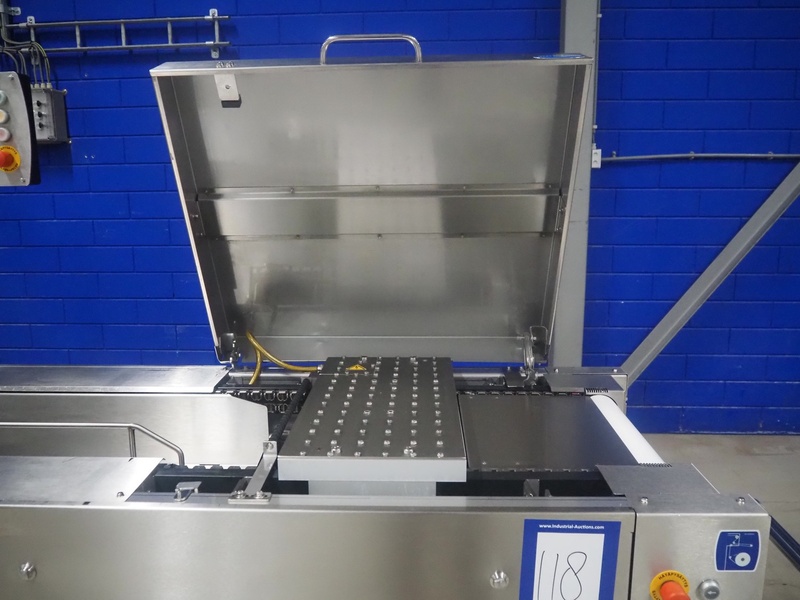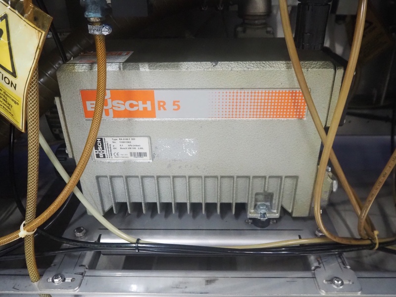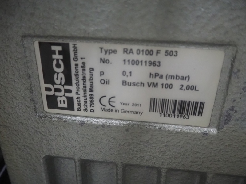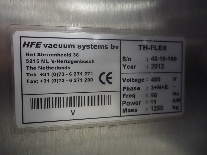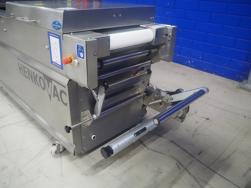 Henkovac mobile thermoformer, model: TH-Flex, serial number: 42-10-166, year of construction: 2012, 400 V, 3 Ph, 50 Hz, 11 kW, 1250 kg, Busch vacuum pump, type: RA 0100 F 503, number: 110011963, year of construction: 2011, capacity: 100 m³ per hour, dimensions dye: (4x) 175 mm x 135 mm, film width: 422 mm, tier: 306 mm, total dimensions: 4300 mm x 1100 mm x 1900 mm. With box with parts.