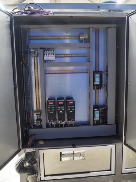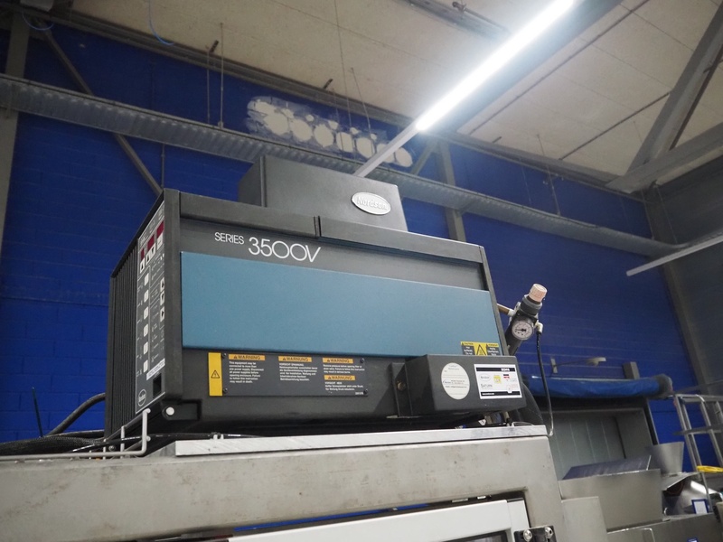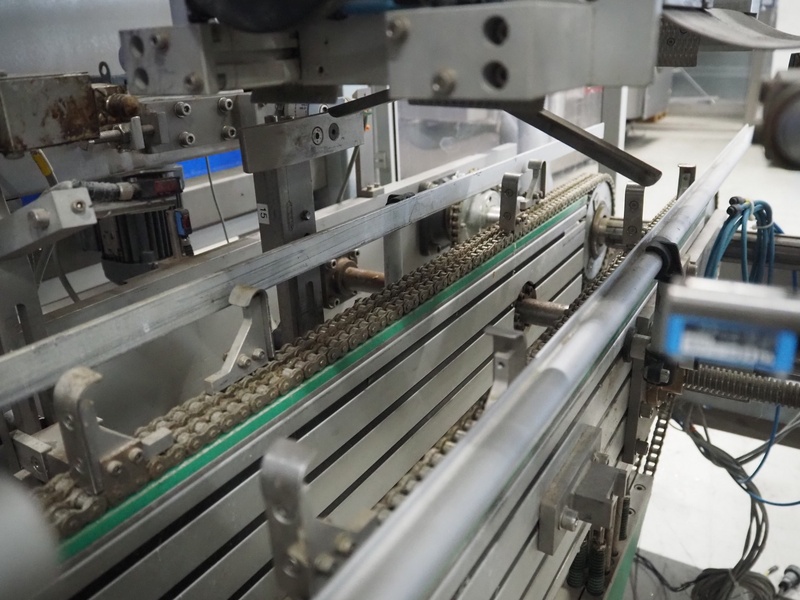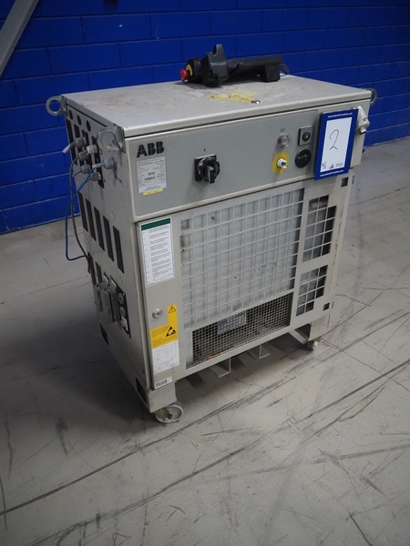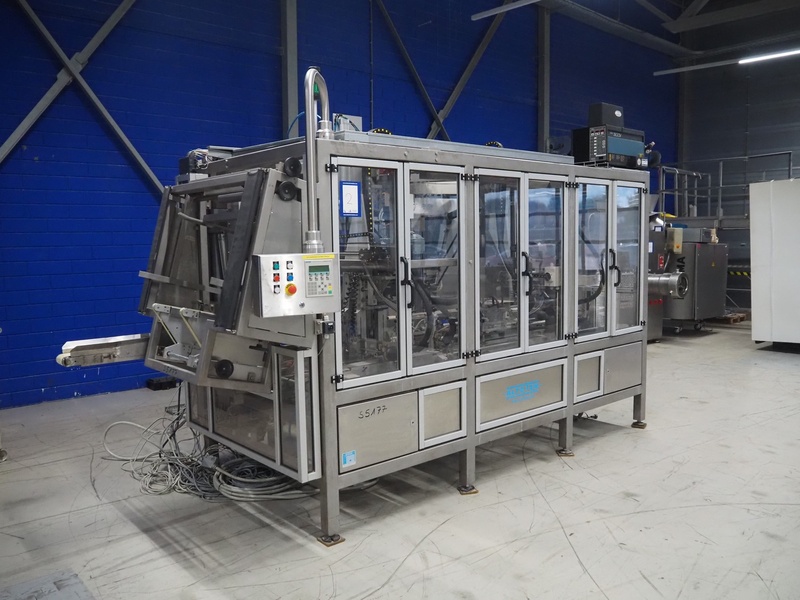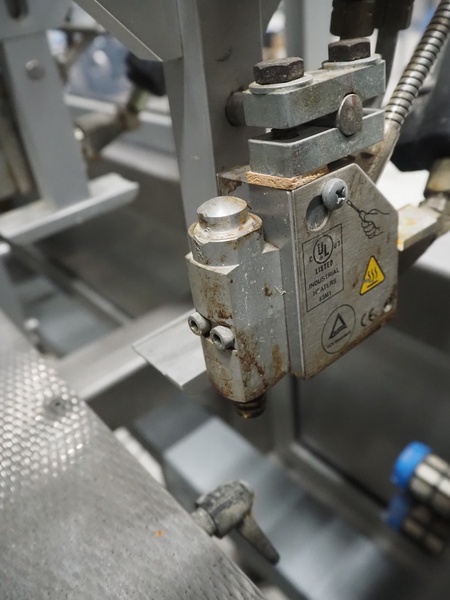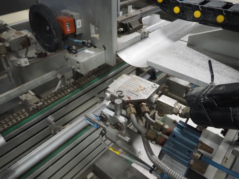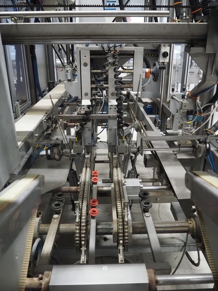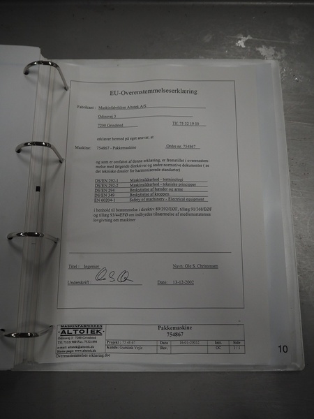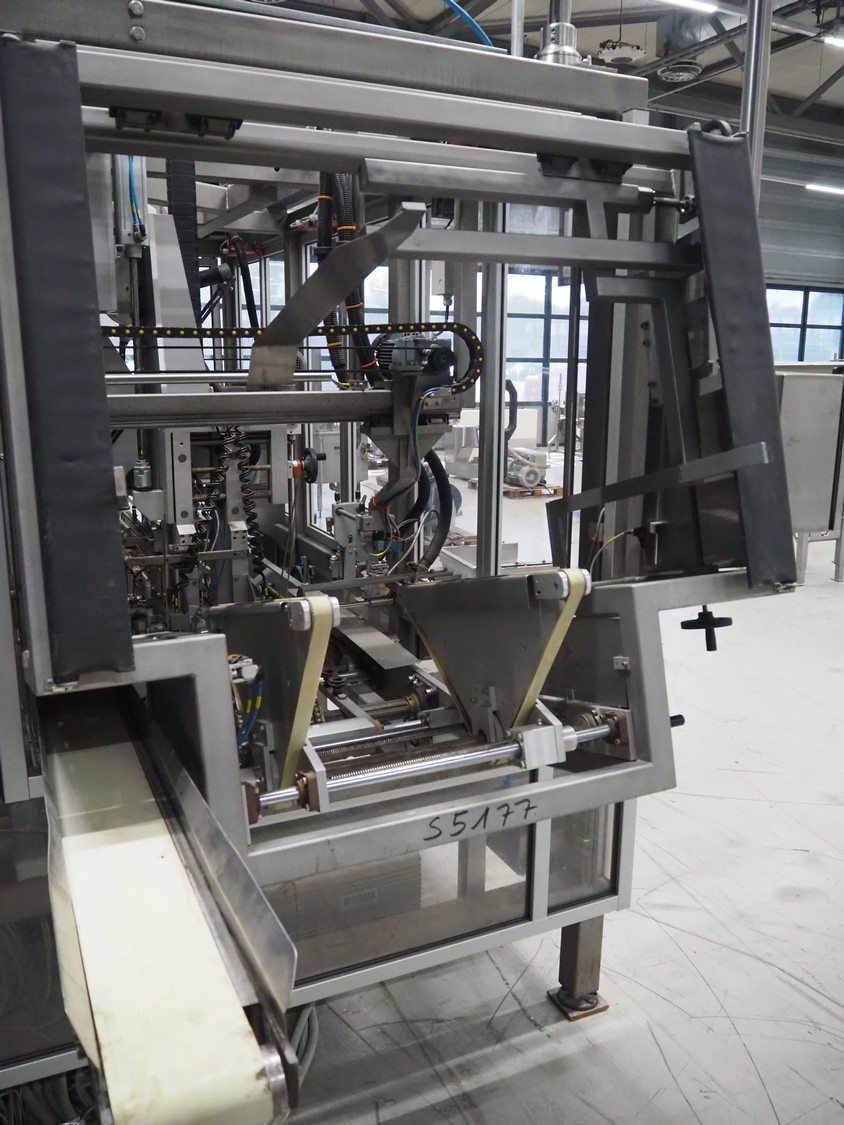 Altotek case erecting and filling machine with FlexPicker, machine number: 754867, year of construction: 31/01-2003, 400 V, 3 Ph, 50 Hz, 35 A, Nordson glue unit, minimum box sizes: 175 mm x 115 mm x 100 mm, maximum box sizes: 350 mm x 250 mm x 250 mm, s/s chain conveyor with dividers, belt width: 200 mm, distance between dividers: 350 mm, divider height: 50 mm, plastic belts, belt width: 130 mm, total dimensions: 4500 mm x 2000 mm x 2600 mm. With ABB control panel and cabinet for robot, type: IRB340 M2000, serial number: 34-20212, year of construction: 19-08-2002, dimensions: 900 mm x 550 mm x 1100 mm.