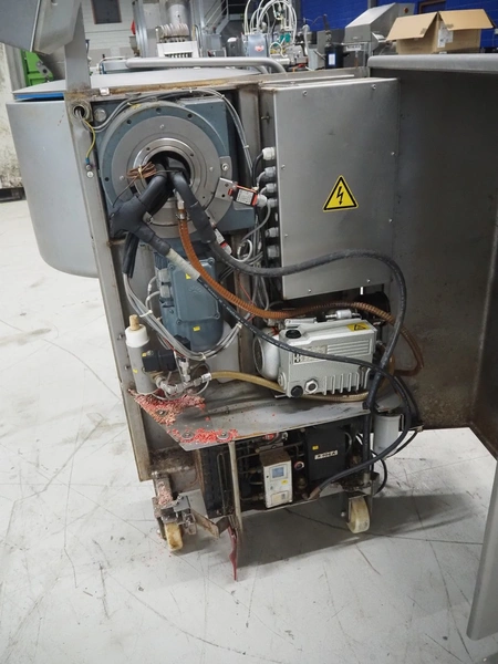 Rühle mobile cooled vacuum tumbler, Busch vacuum pump, type: KC 0010 D IZO, number: 05012119, year of construction: 2005, capacity: 10 m³ per hour, inside dimensions: Ø 680 mm x 420 mm, total dimensions: 1300 mm x 1000 mm x 1650 mm.
