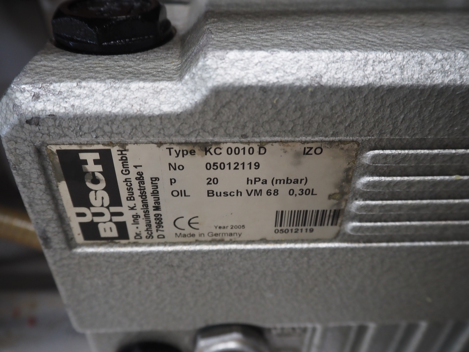 Rühle mobile cooled vacuum tumbler, Busch vacuum pump, type: KC 0010 D IZO, number: 05012119, year of construction: 2005, capacity: 10 m³ per hour, inside dimensions: Ø 680 mm x 420 mm, total dimensions: 1300 mm x 1000 mm x 1650 mm.