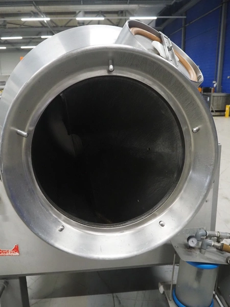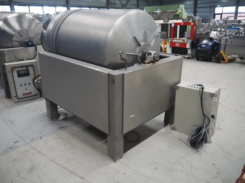 Lutetia vacuum tumbler, number: 7581, inside dimensions: Ø 1000 mm x 1500 mm, total dimensions: 2600 mm x 1400 mm x 1800 mm. Technical condition unknown, without vacuum pump.