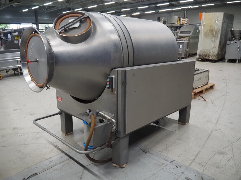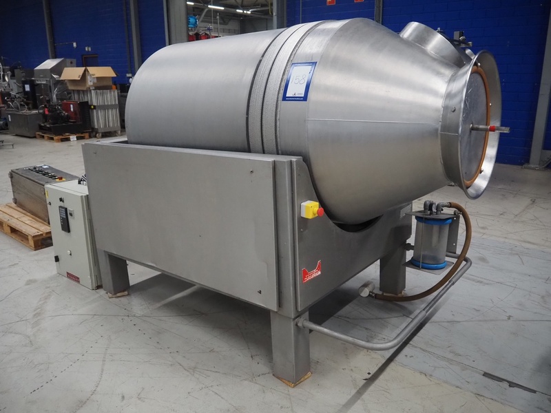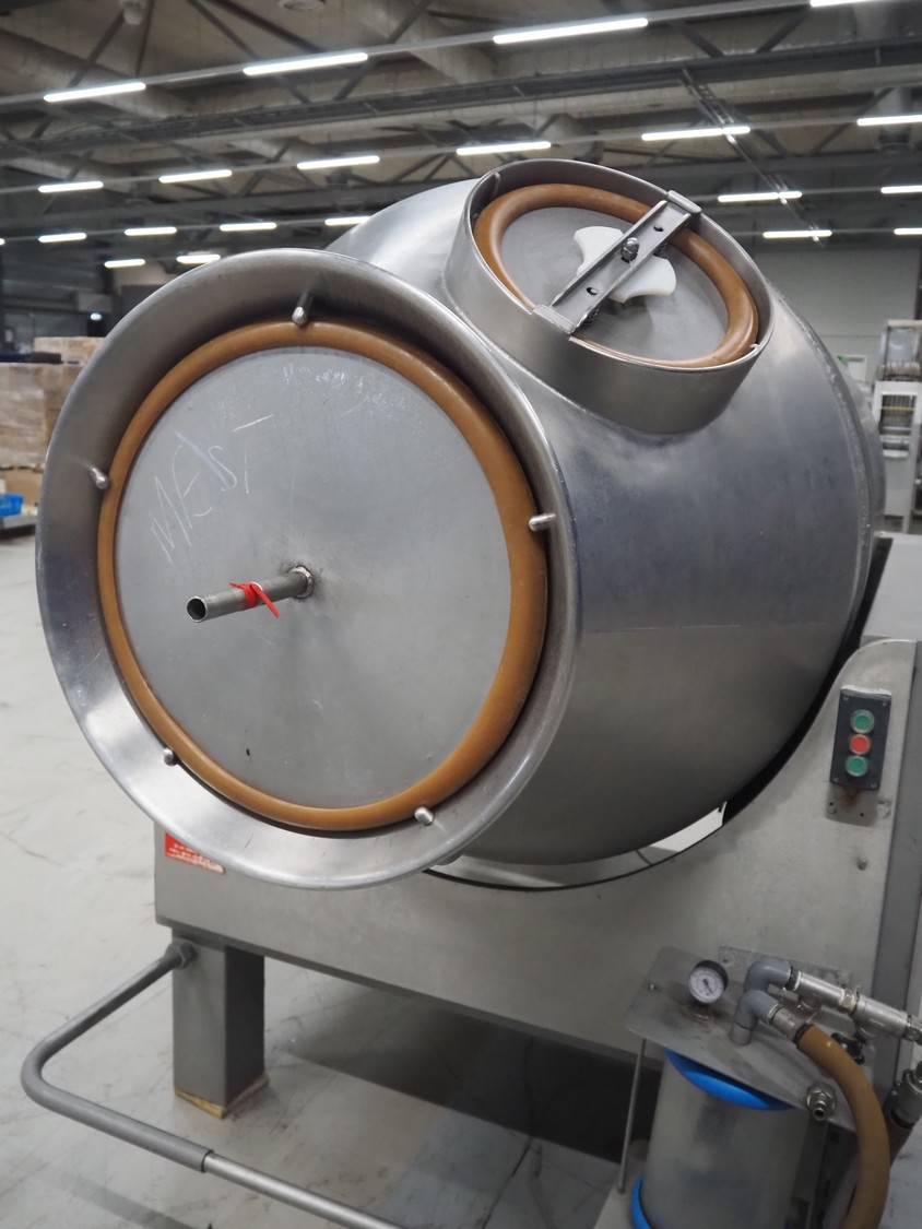 Lutetia vacuum tumbler, number: 7581, inside dimensions: Ø 1000 mm x 1500 mm, total dimensions: 2600 mm x 1400 mm x 1800 mm. Technical condition unknown, without vacuum pump.