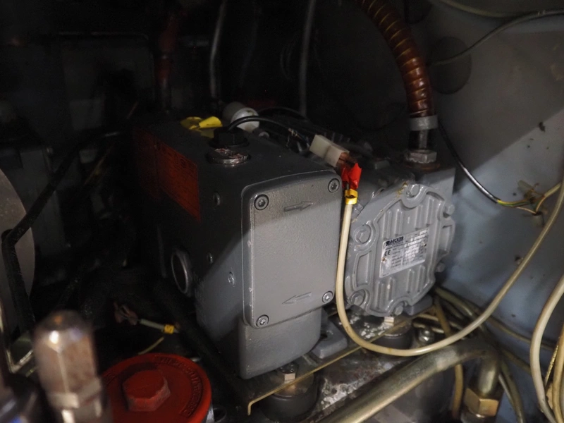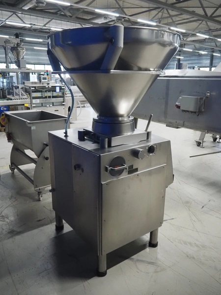 Handtmann vacuum filling machine, type: VF200, number: 11764-1, Becker vacuum pump, type: U 1.16SA-31, number: B 2772918, capacity: 16/19 m³ per hour, dimensions: 950 mm x 900 mm x 1860 mm.