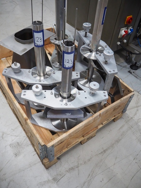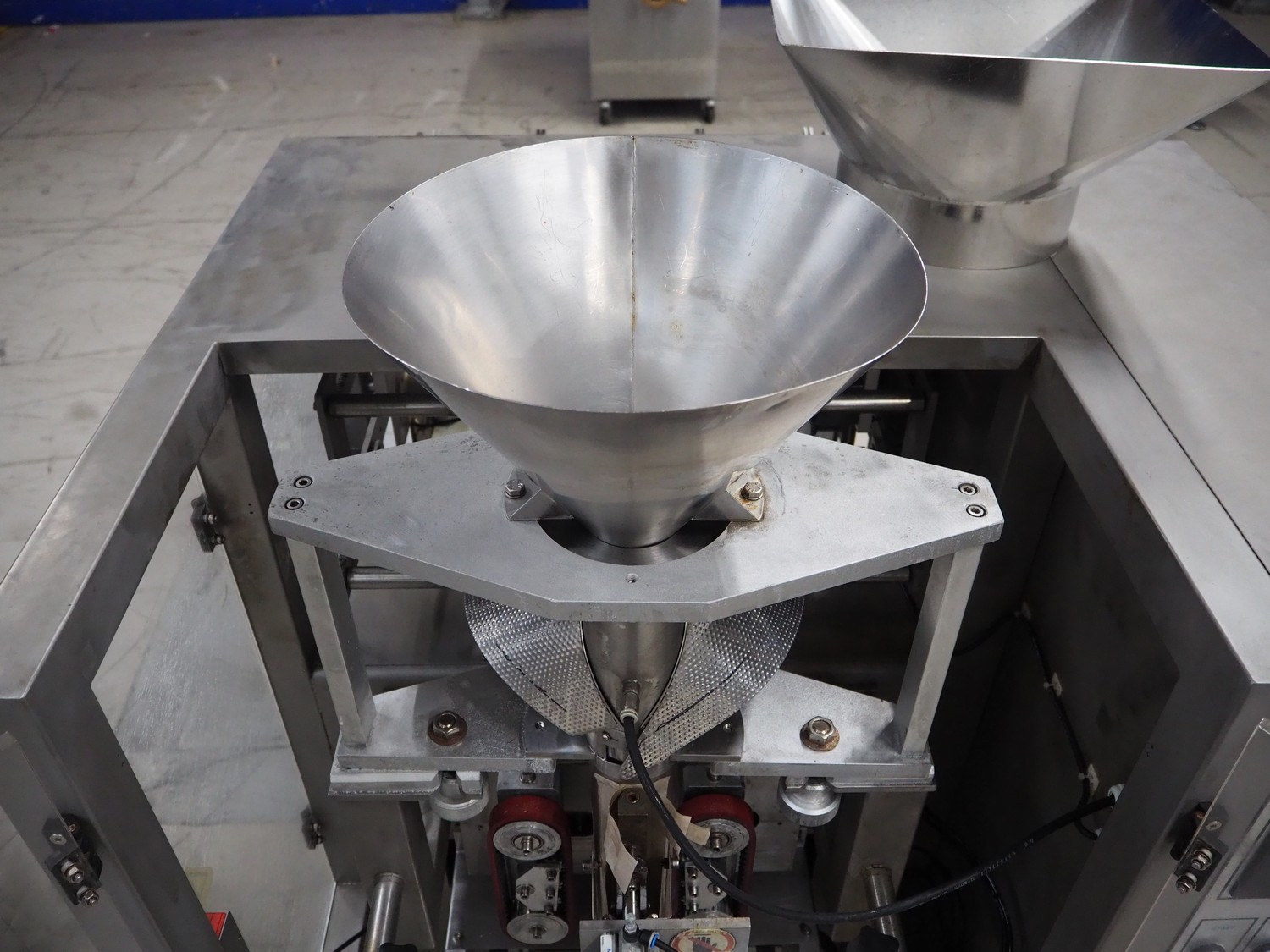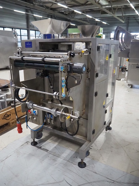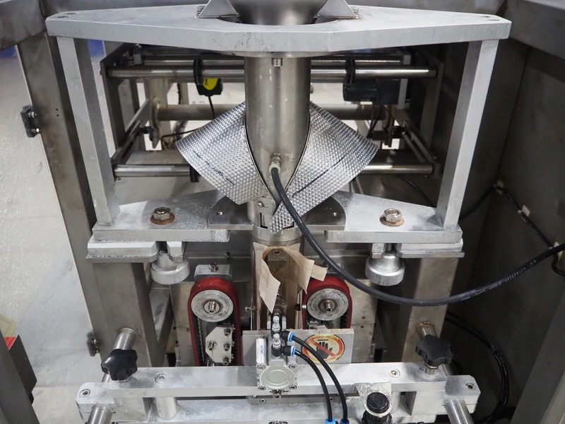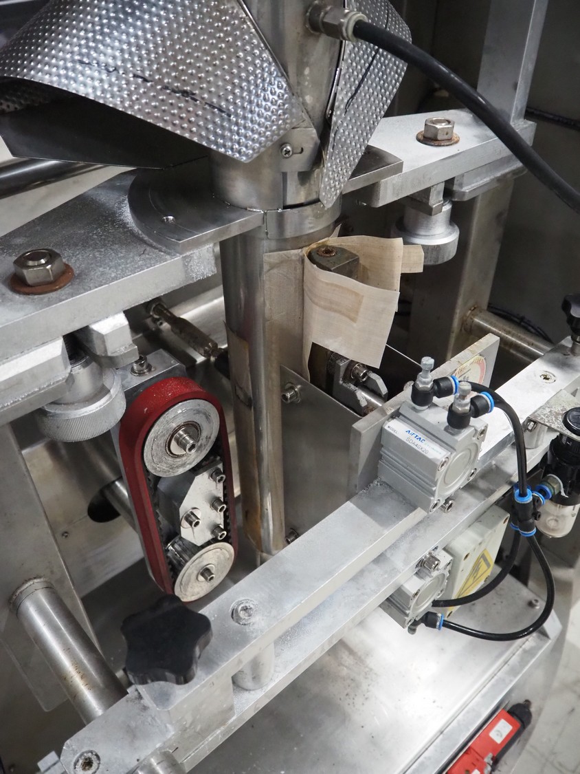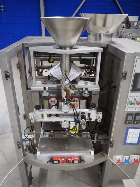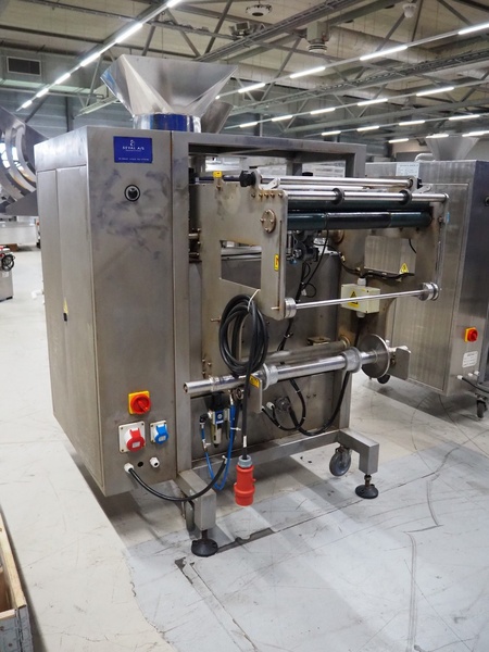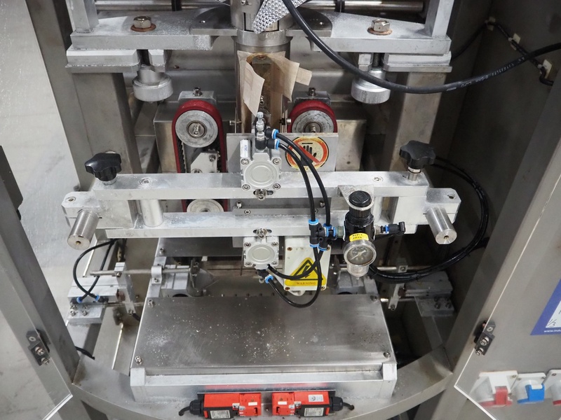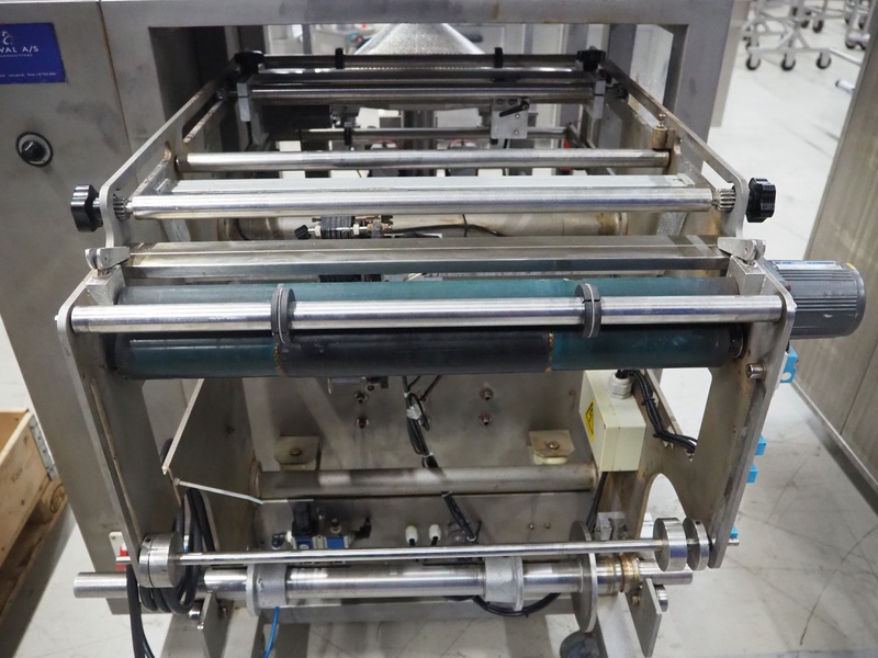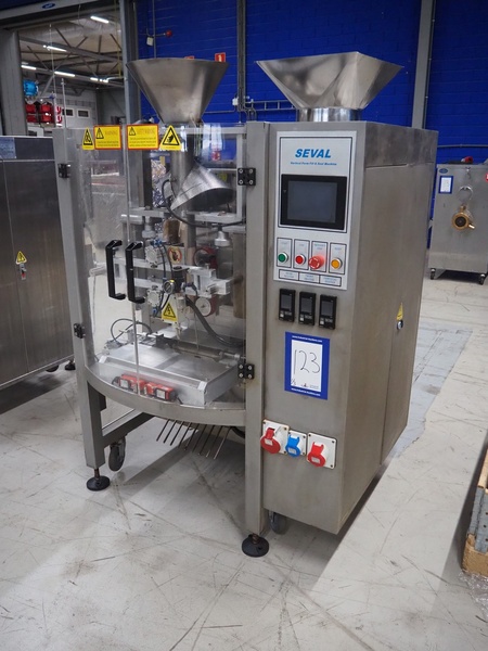 Seval vertical bag form-, fill- and seal machine, diameter filling pipe: 75 mm, vertical seal length: 320 mm, horizontal seal length: 250 mm, total dimensions: 1600 mm x 1150 mm x 1670 mm. Including extra filling pipes, diameter filling pipes: (1x) 55 mm, (1x) 70 mm.