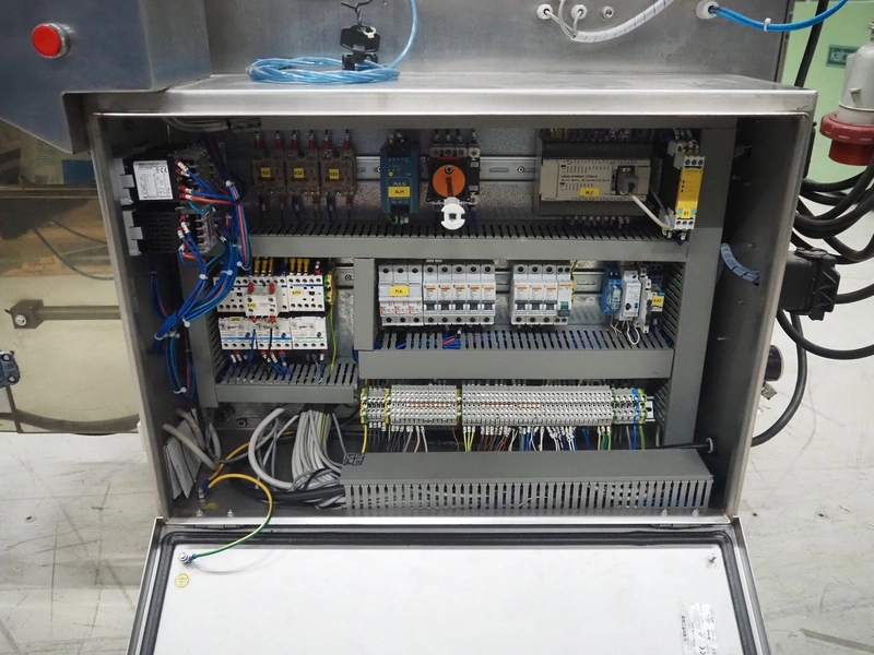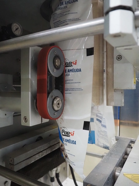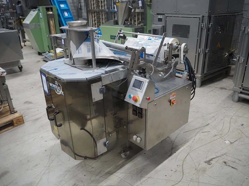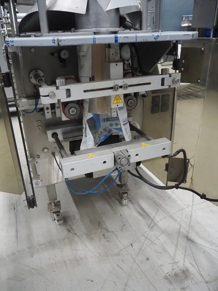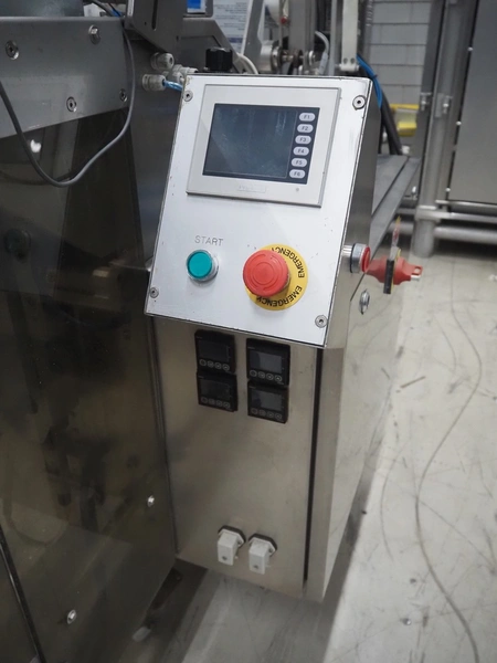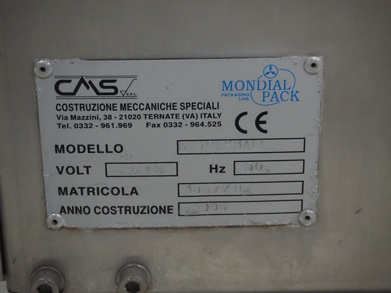 CMS mobile vertical bag form-, fill-, and seal machine, model: MV100Small, serial number: 1067/06, year of construction: 2006, 380 V, 50 Hz, film width: 500 mm, seal width: 320 mm, total dimensions: 1400 mm x 1000 mm x 1400 mm.