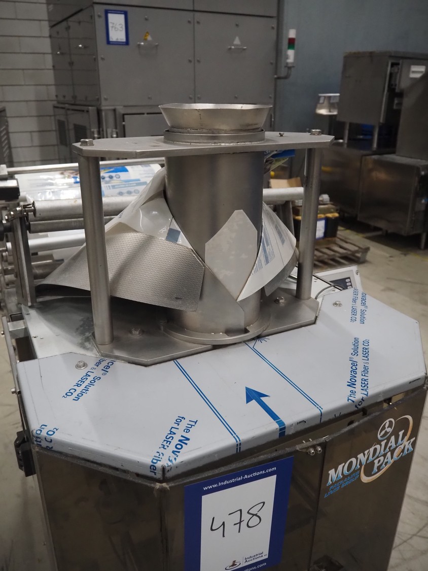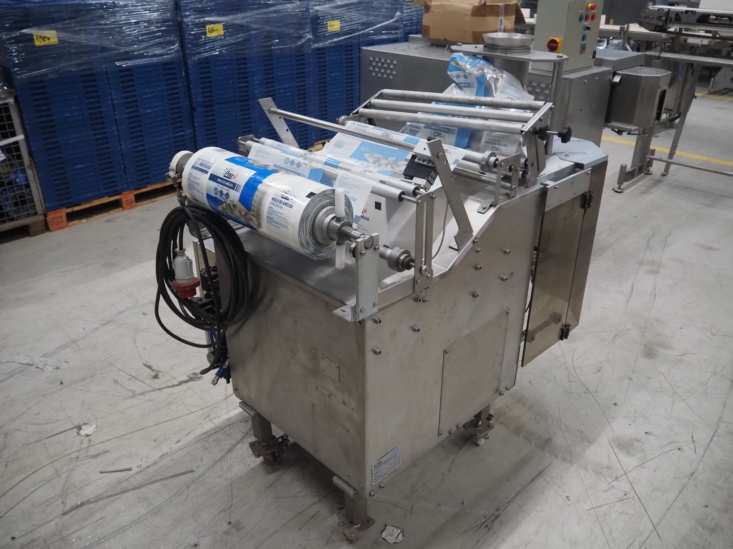 CMS mobile vertical bag form-, fill-, and seal machine, model: MV100Small, serial number: 1067/06, year of construction: 2006, 380 V, 50 Hz, film width: 500 mm, seal width: 320 mm, total dimensions: 1400 mm x 1000 mm x 1400 mm.