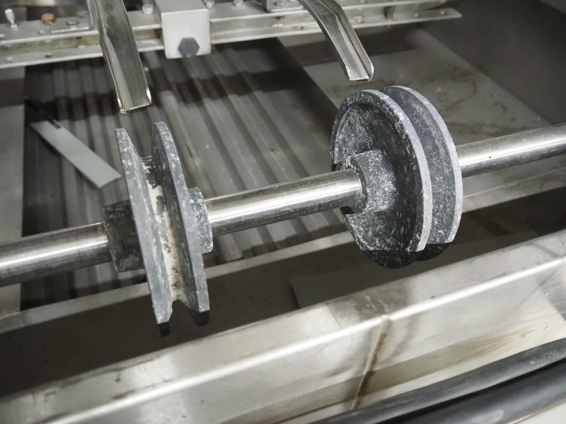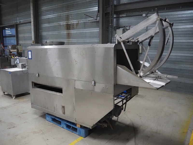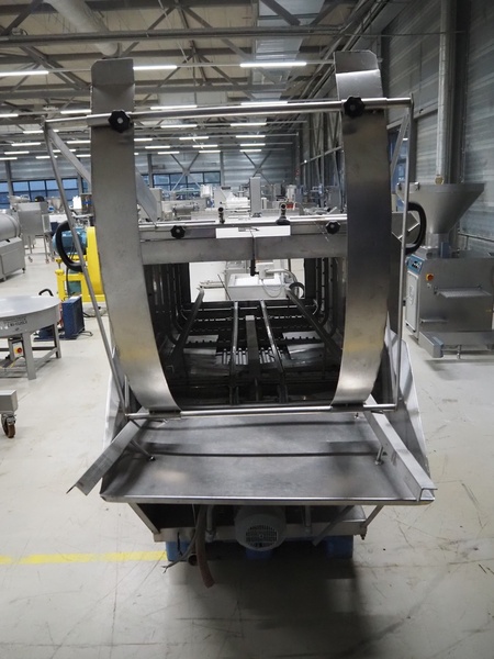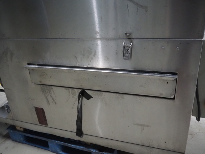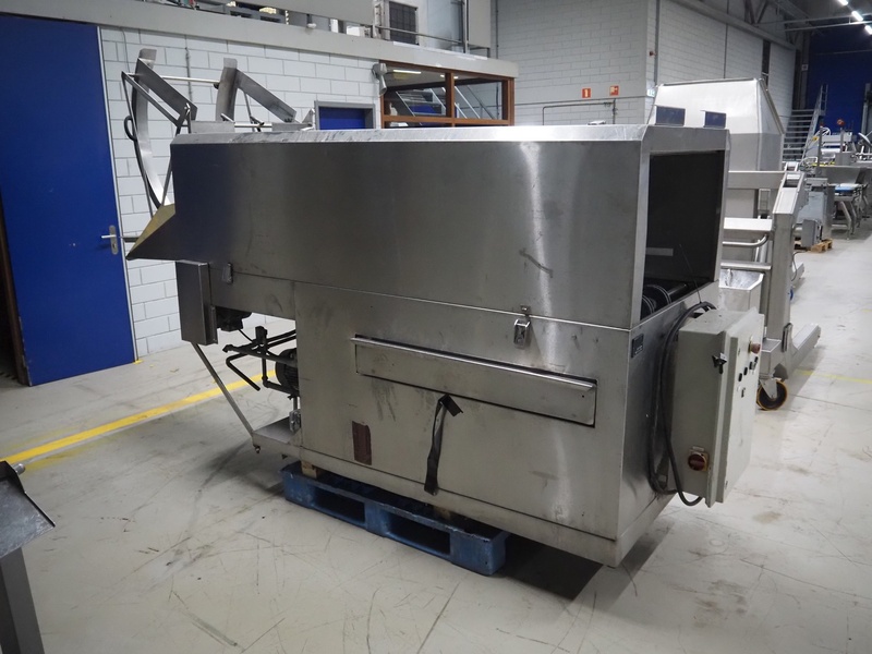 Mafo Howden B.V. crate washing machine, serial number: MAFO 230 SN, year of construction: 1993, clearance: 860 mm x 530 mm, total dimensions: 3800 mm x 1100 mm x 1630 mm. Incomplete.