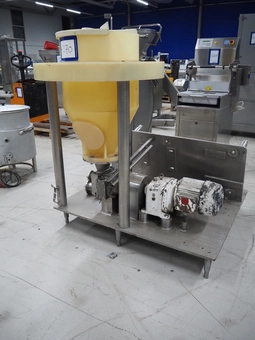 APV Crepaco lobe rotor pump on s/s platform with plastic infeed hopper specially for cheese, serial number: F-0272, capacity: 100 l…1 bidLot is closed