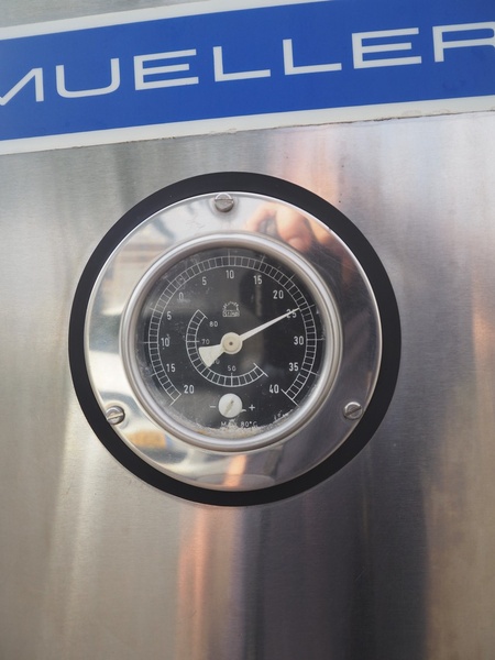 Mueller s/s double jacketed tank with mixing arm, serial number: 30607, dimensions: 3300 mm x 2000 mm x 1700 mm.