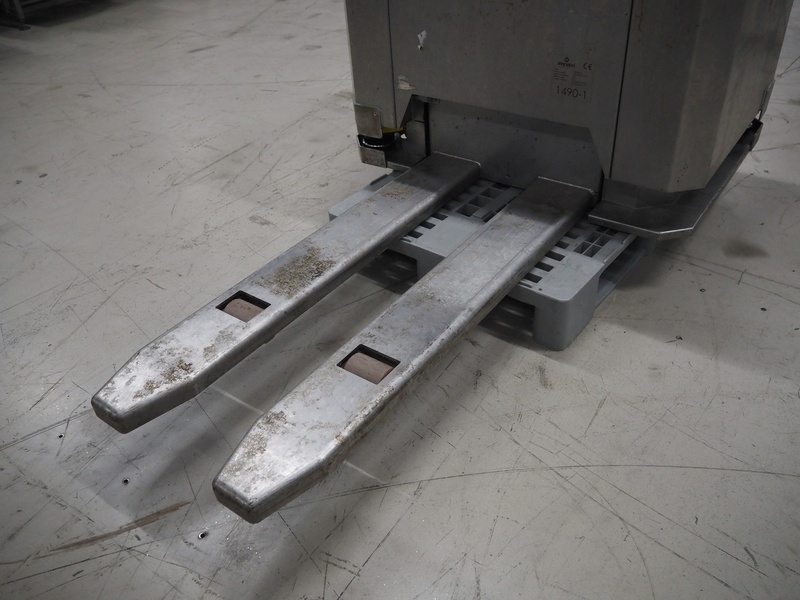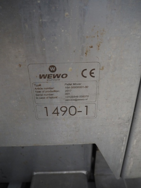 Wewo automatic pallet lifter, type: Pallet mover, serial number: 001, year of construction: 2017, s/s forks, fork length: 1300 mm, total dimensions: 2000 mm x 1100 mm x 970 mm.