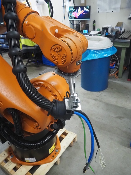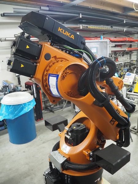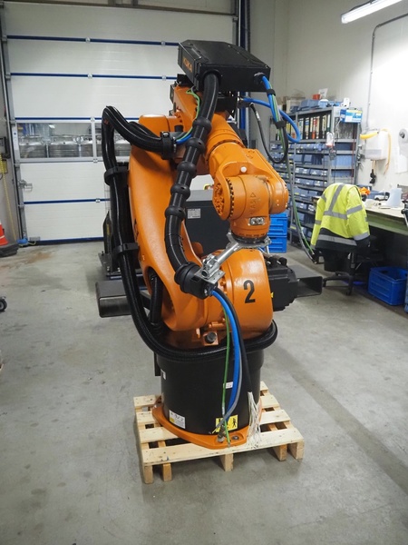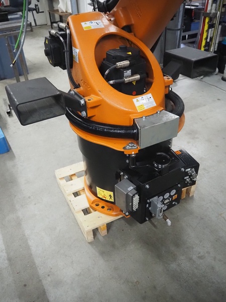 Kuka packaging robot, type: KR 30-3, serial number: 704809, year of construction: 05/2018, capacity: 30 kg, range: 2033 mm, touchpad control, dimension robot: 1400 mm x 1150 mm x 2050 mm, dimensions: platform: 1100 mm x 1100 mm x 1400 mm, dimensions switch cabinet: 800 mm x 700 mm x 1000 mm. Never used. Lot located in Nuenen (NL). Viewing and pick-up in consultation with Industrial Auctions BV.