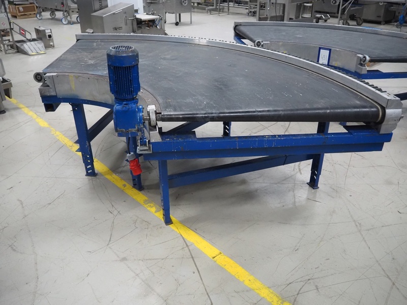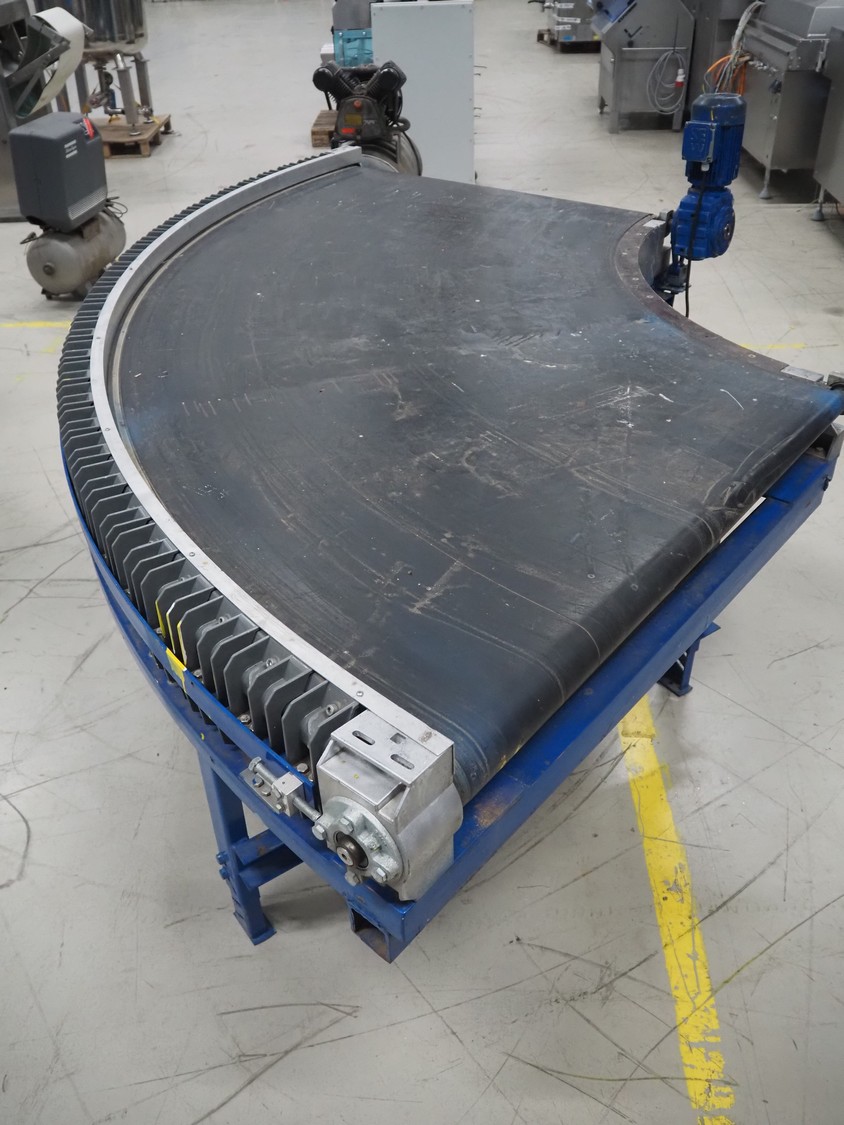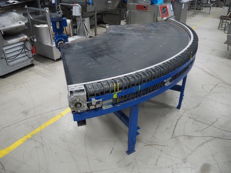 90° curve conveyor, plastic belt, belt width: 1200 mm, total dimensions: 2750 mm x 1700 mm x 1250 mm.