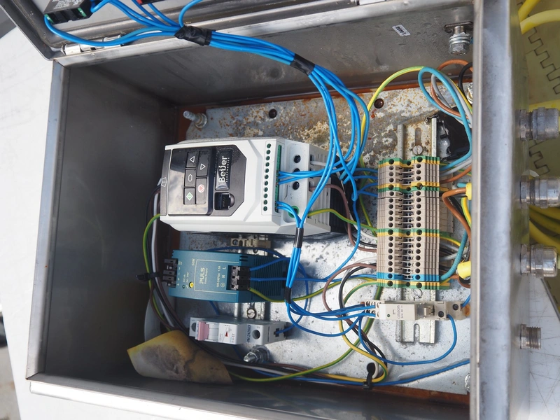 Sydmekano AB mobile elevating belt, serial number: 145, year of construction: 2016, s/s frame, plastic belt with dividers, belt width: 540 mm, divider height: 75 mm, distance between dividers: 700 mm, elevating height: 2700 mm, total dimensions: 5700 mm x 900 mm x 2850 mm.