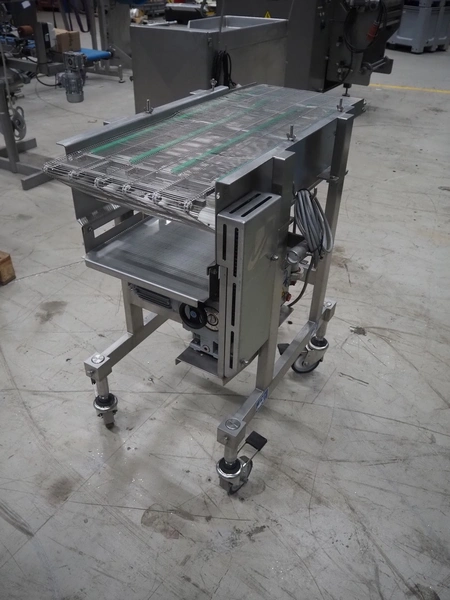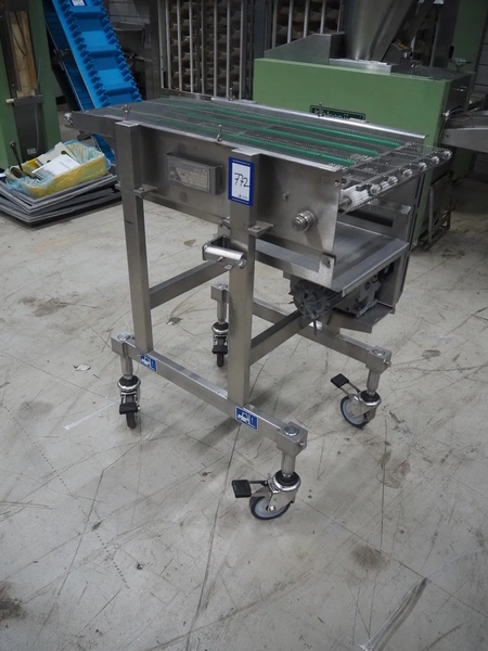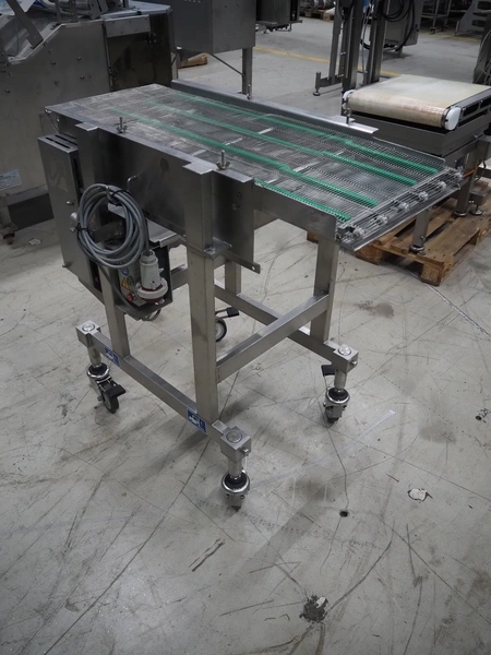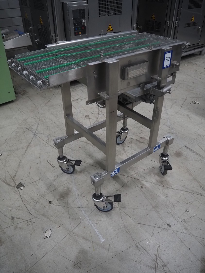 CFS mobile mesh belt, type: TRC 1000/400, machine number: 1872, year of construction: 2002, 400 V, 3 Ph, 50 Hz, 0.72 A, 0.18 kW, 85 kg, s/s frame, s/s mesh belt, belt width: 400 mm, total dimensions: 1100 mm x 600 mm x 1050 mm.