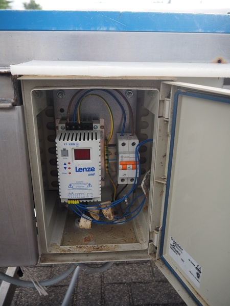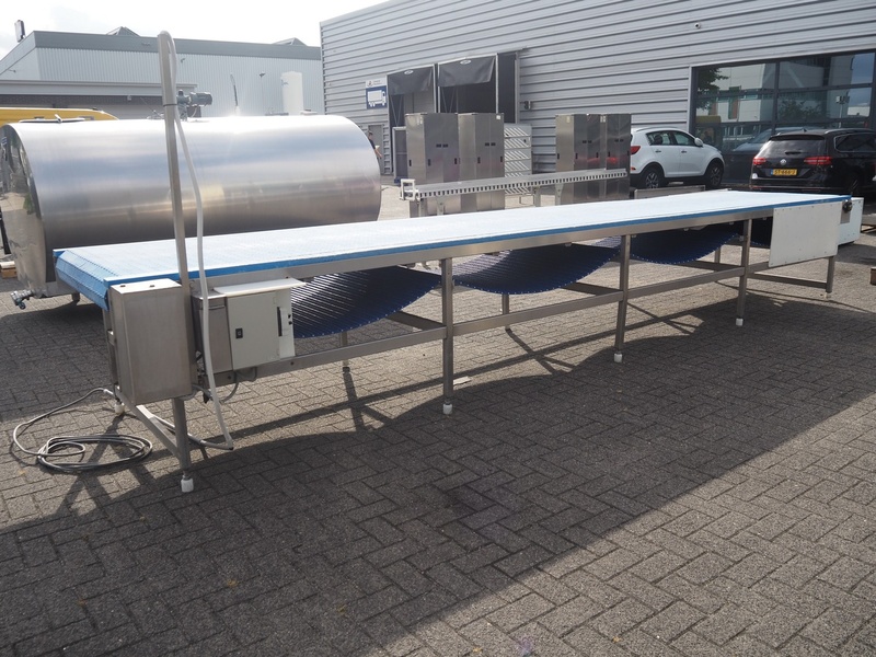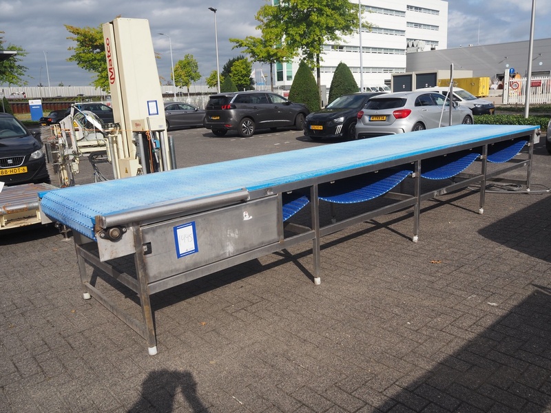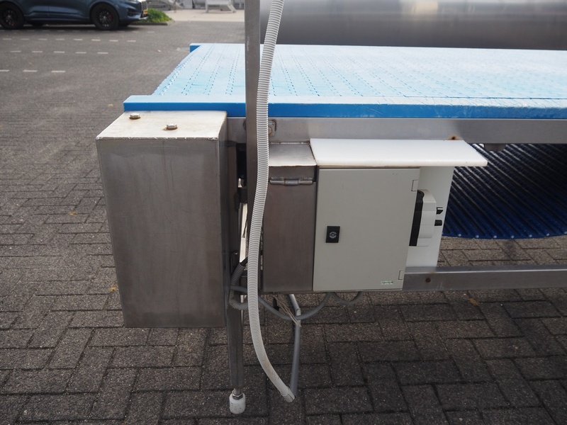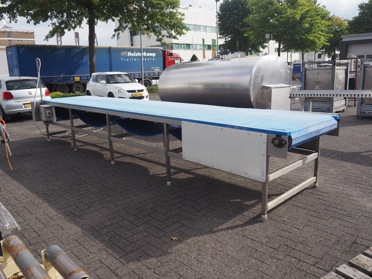 Transport belt, s/s frame, plastic belt, belt width: 1000 mm, total dimensions: 6050 mm x 1400 mm x 1850 mm.