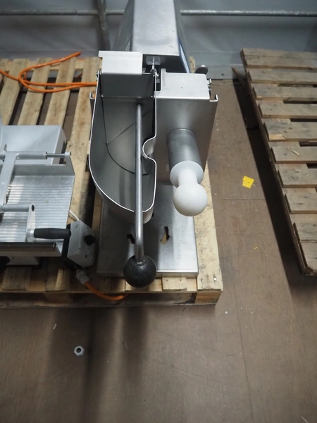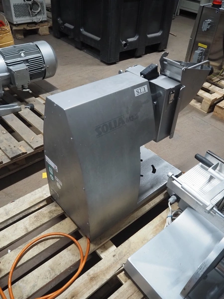 Solia slicer, type: M3.2, 400 V, 50 Hz, dimensions: 850 mm x 310 mm x 600 mm. Missing knife.