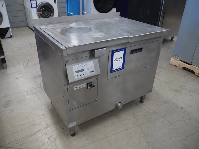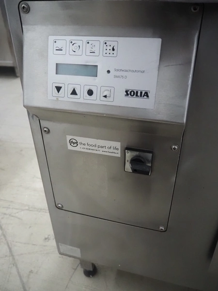 Solia salad washer and dryer, type: SWA 75 D, machine number: 82/05 0337 08, 230 V, 50 Hz, 1.5 kW, dimensions washer: Ø 420 mm x 350 mm, working dimensions: Ø 395 mm x 290 mm, total dimensions: 1000 mm x 700 mm x 865 mm.